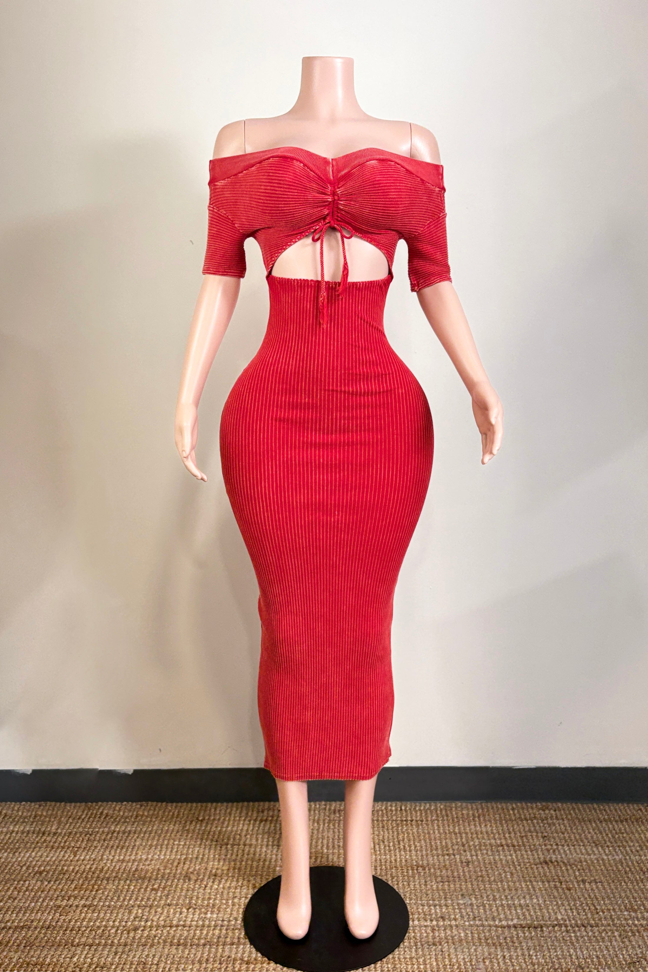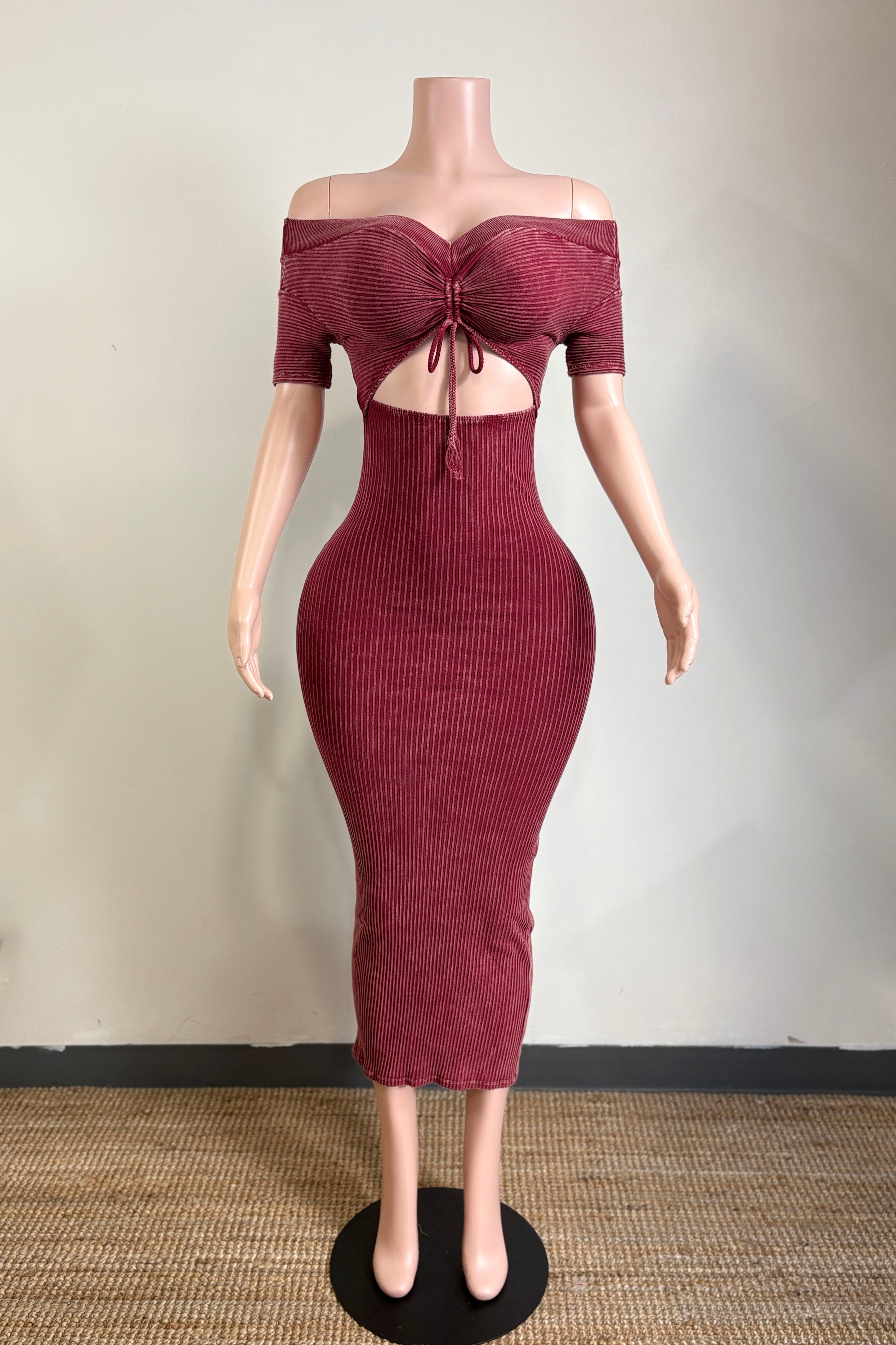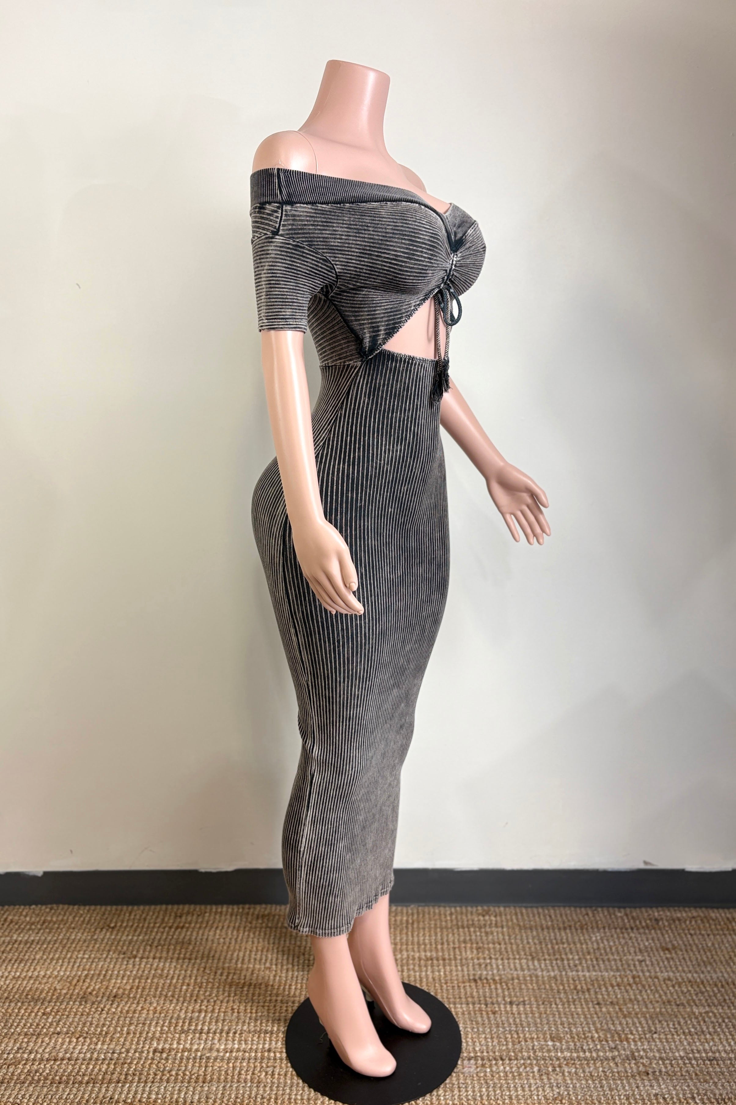 MINERAL WASH FRONT RUCHING SWEETHEART MIDI DRESS