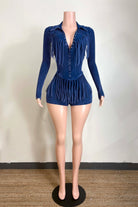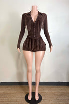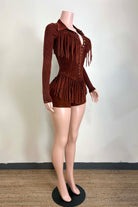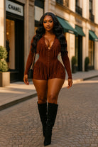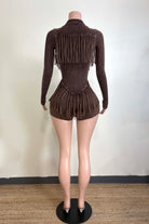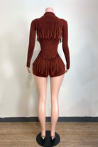 .MINERAL WASH FRINGE LONG SLEEVE COLLARED ROMPER