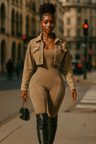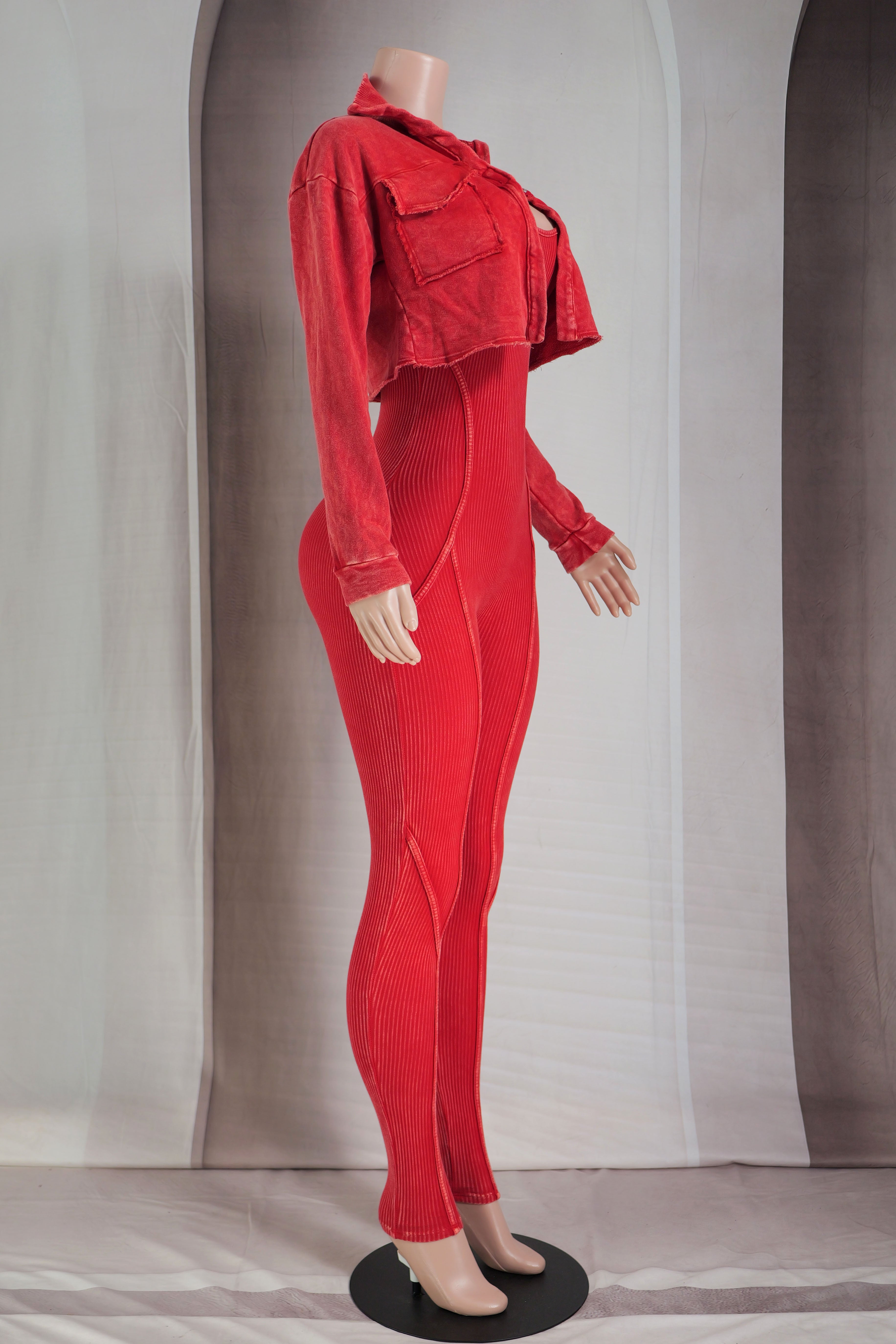 MINERAL WASH CROPPED JACKET & JUMPSUIT SET