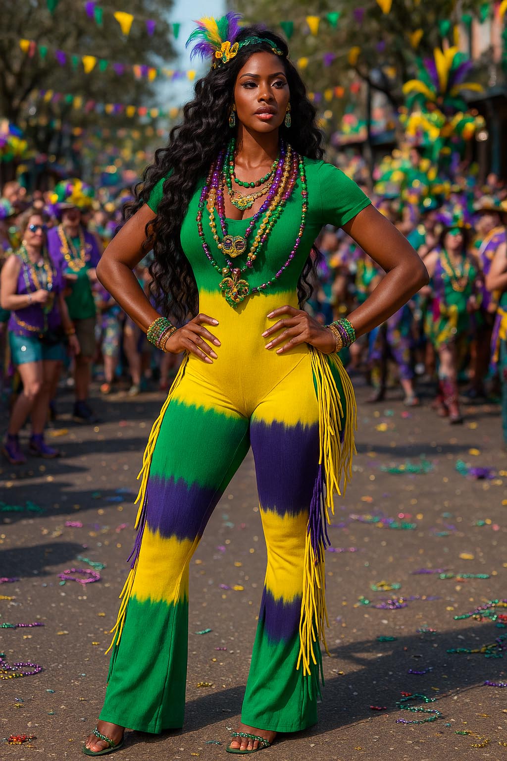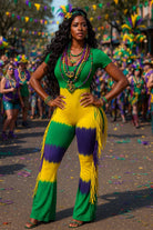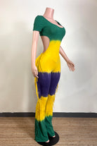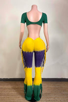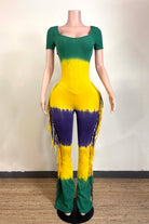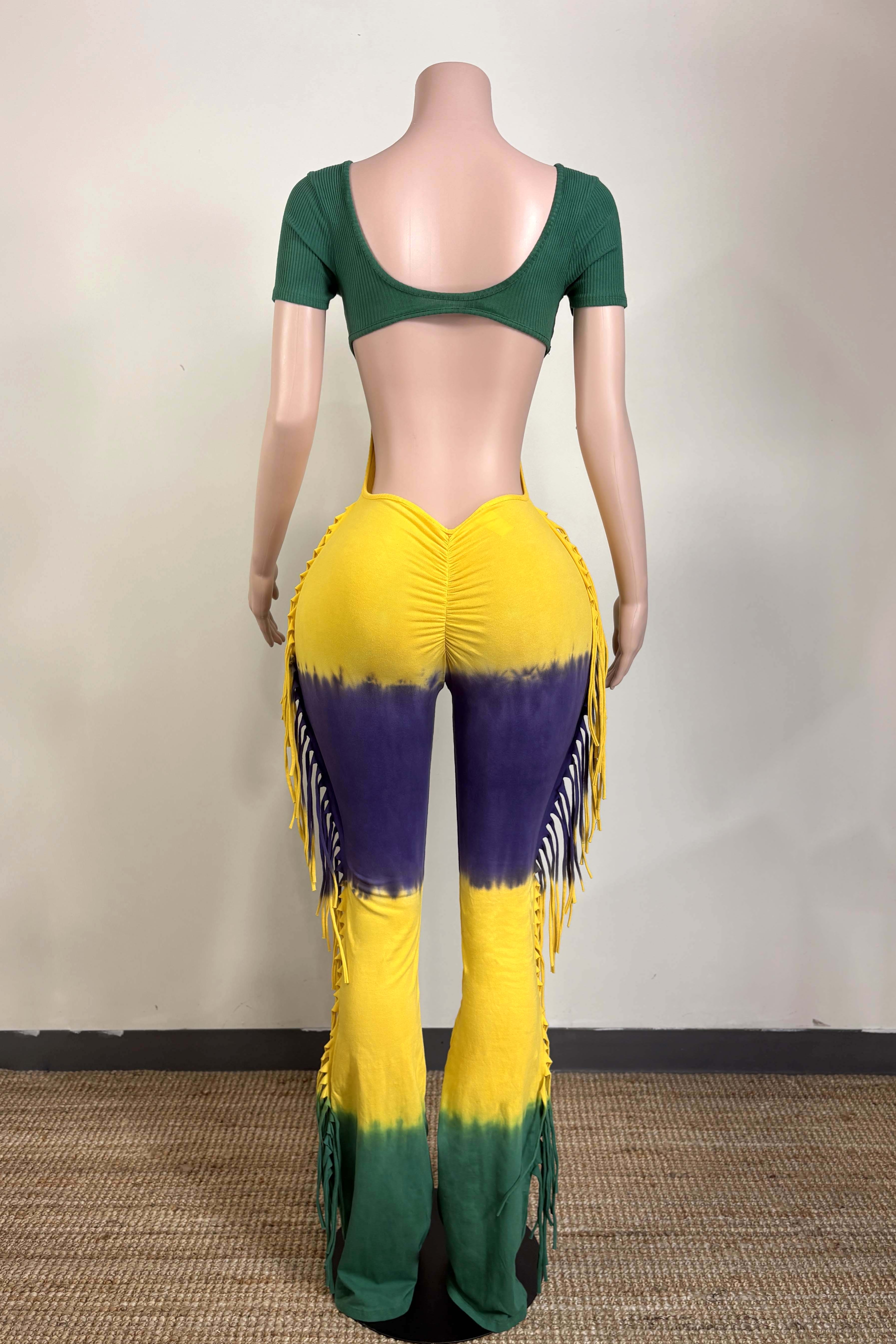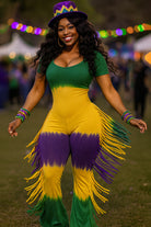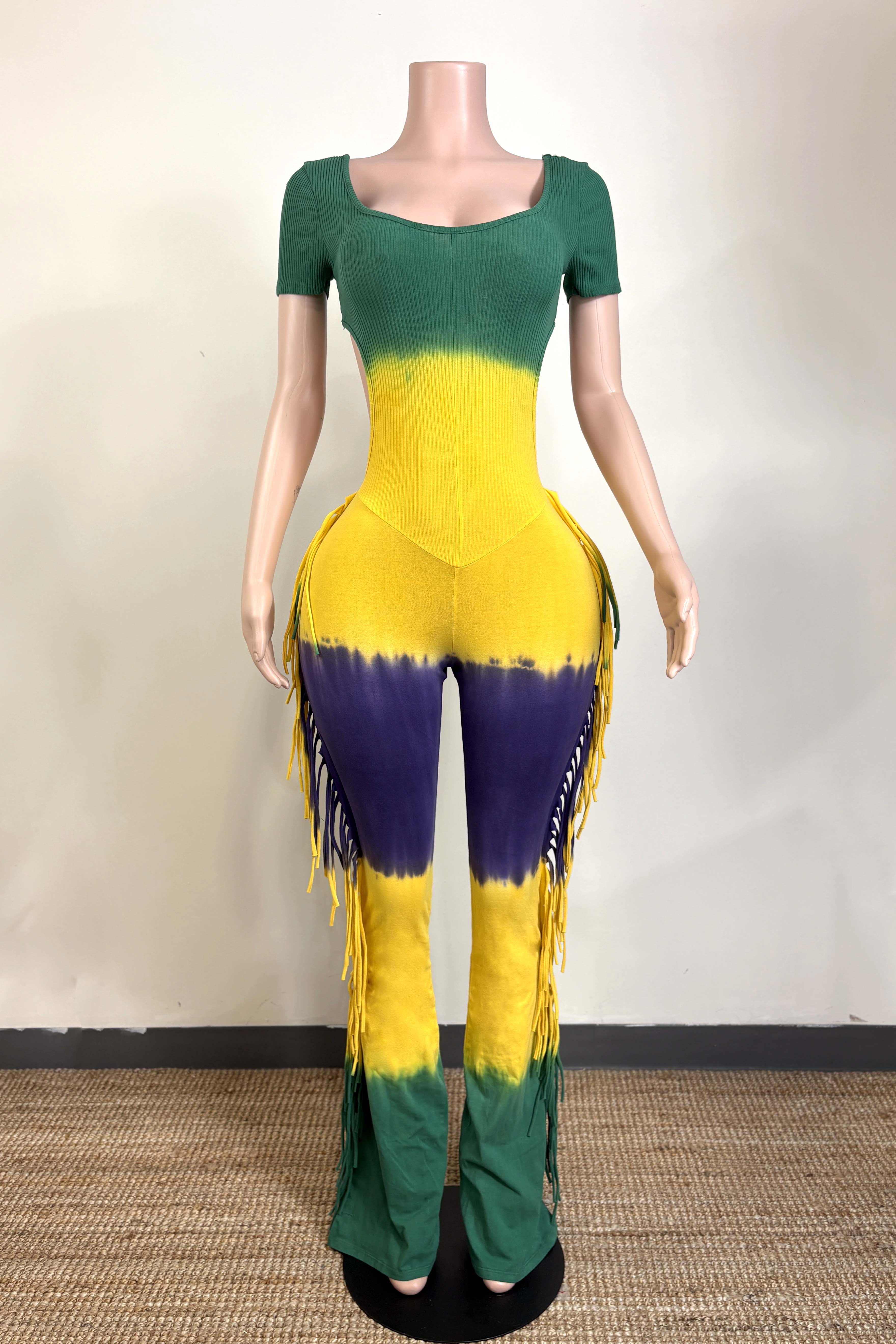 MARDI GRAS STRIPE TIE DYE FRINGE JUMPSUIT