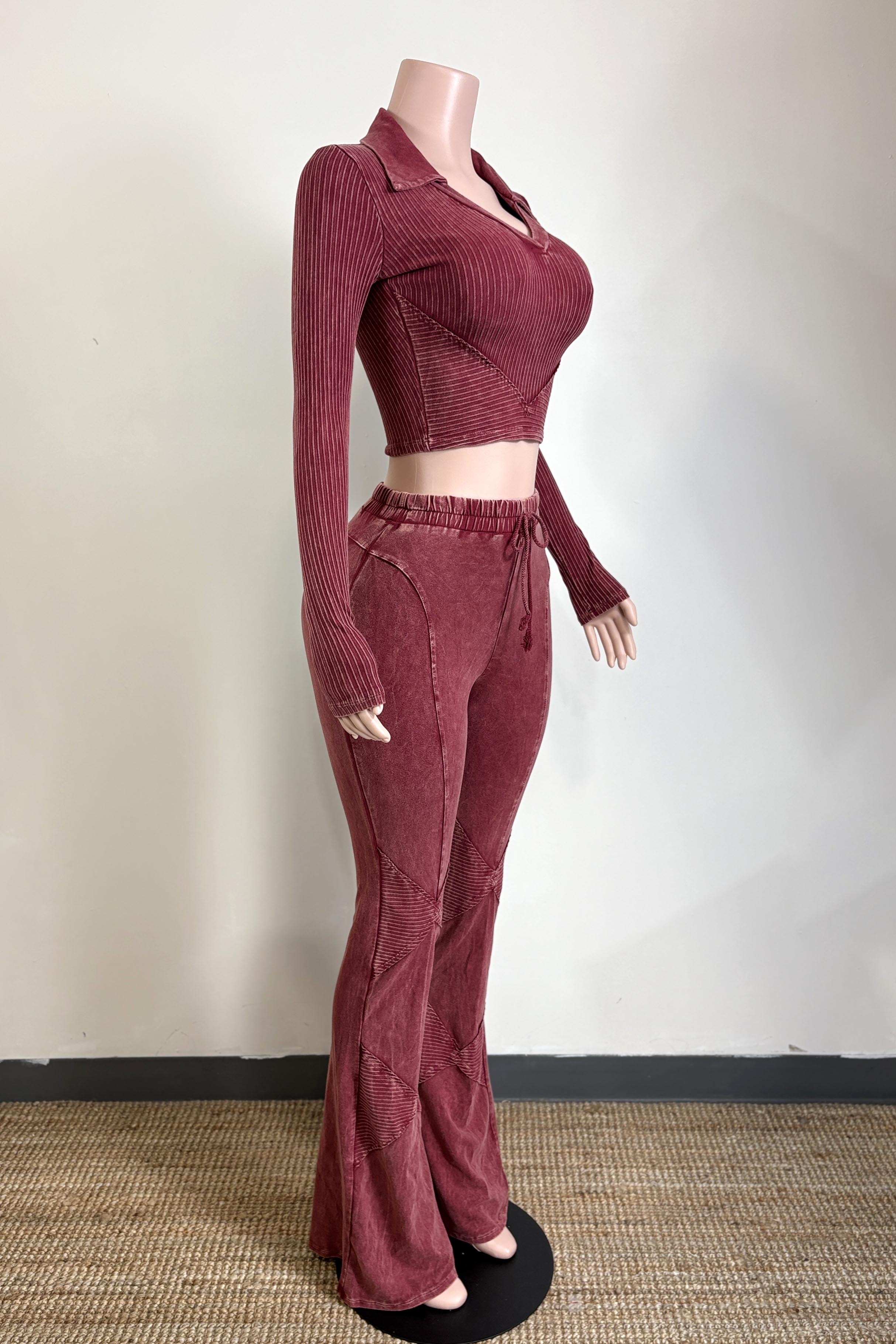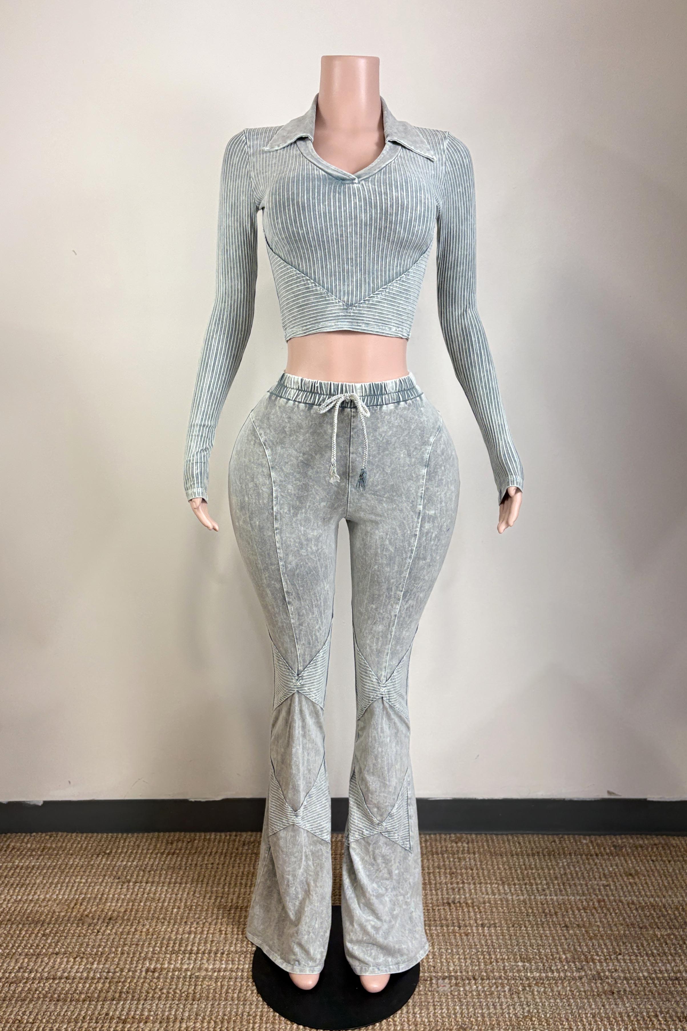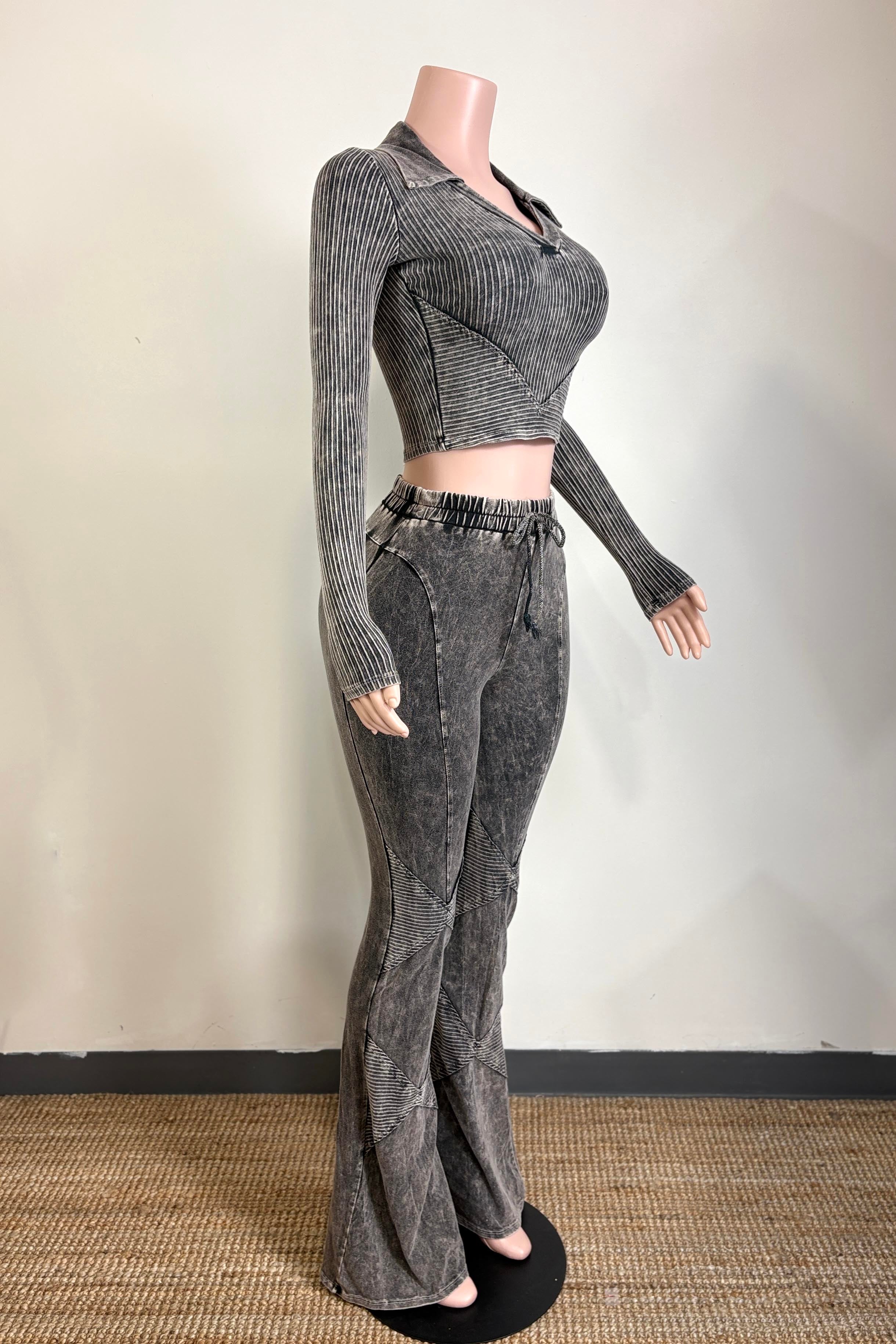 MINERAL WASH CONTRAST COLLARED TOP & PANT SET