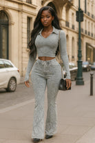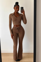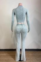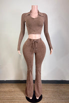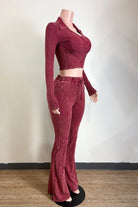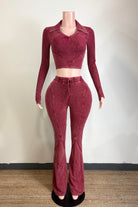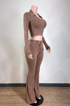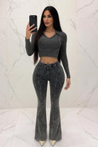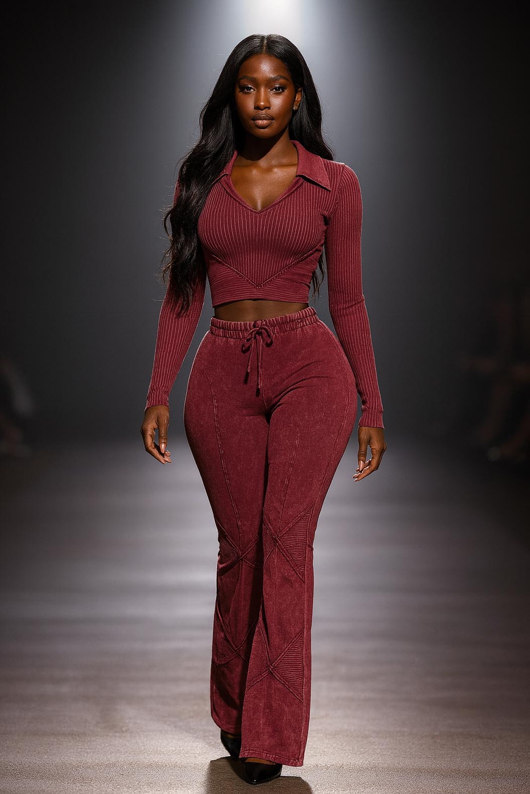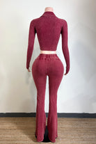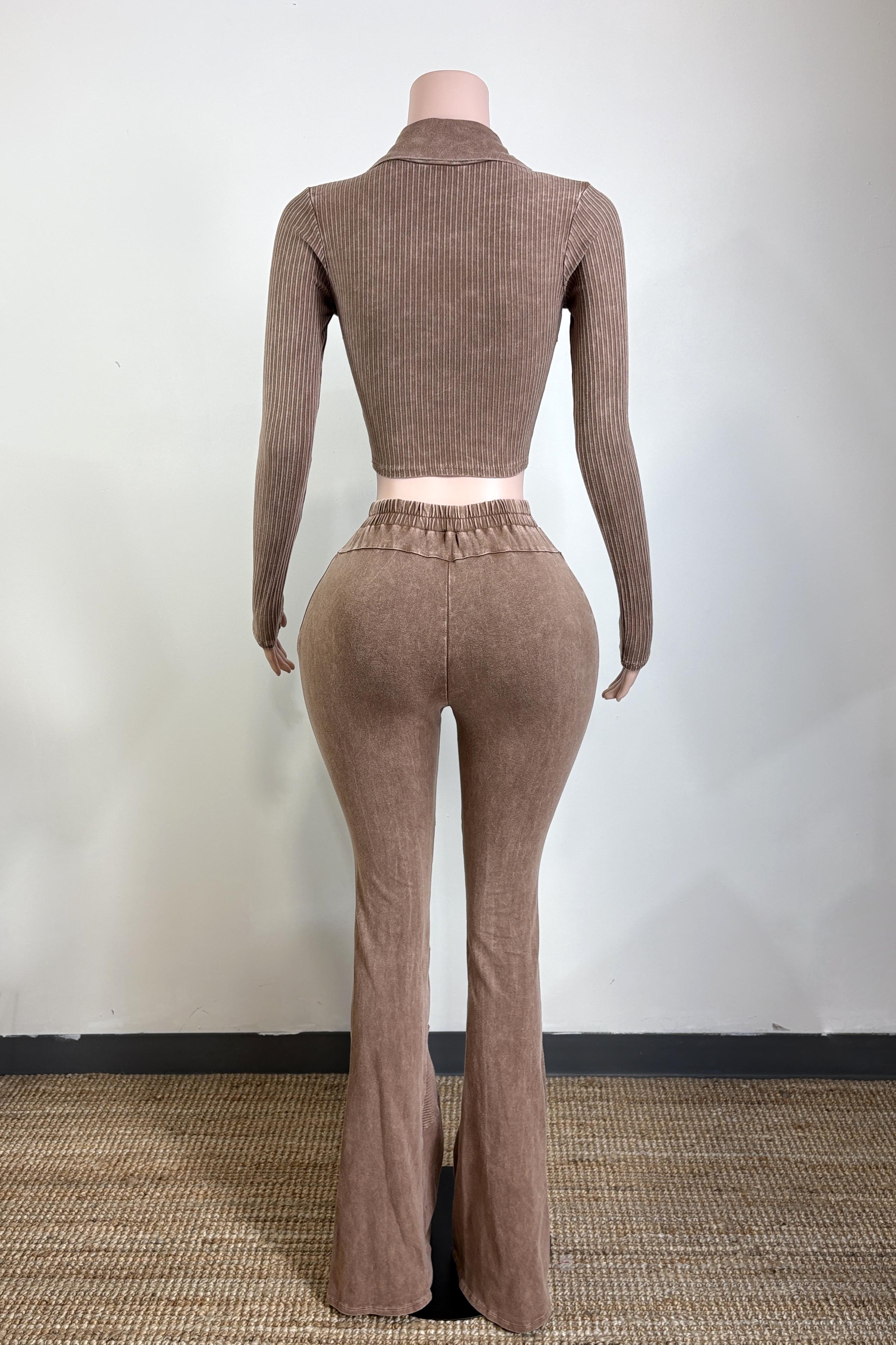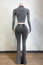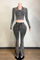 MINERAL WASH CONTRAST COLLARED TOP & PANT SET
