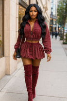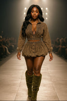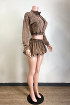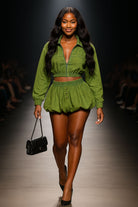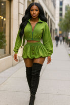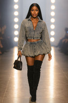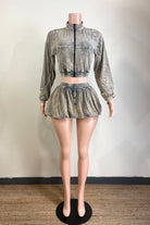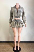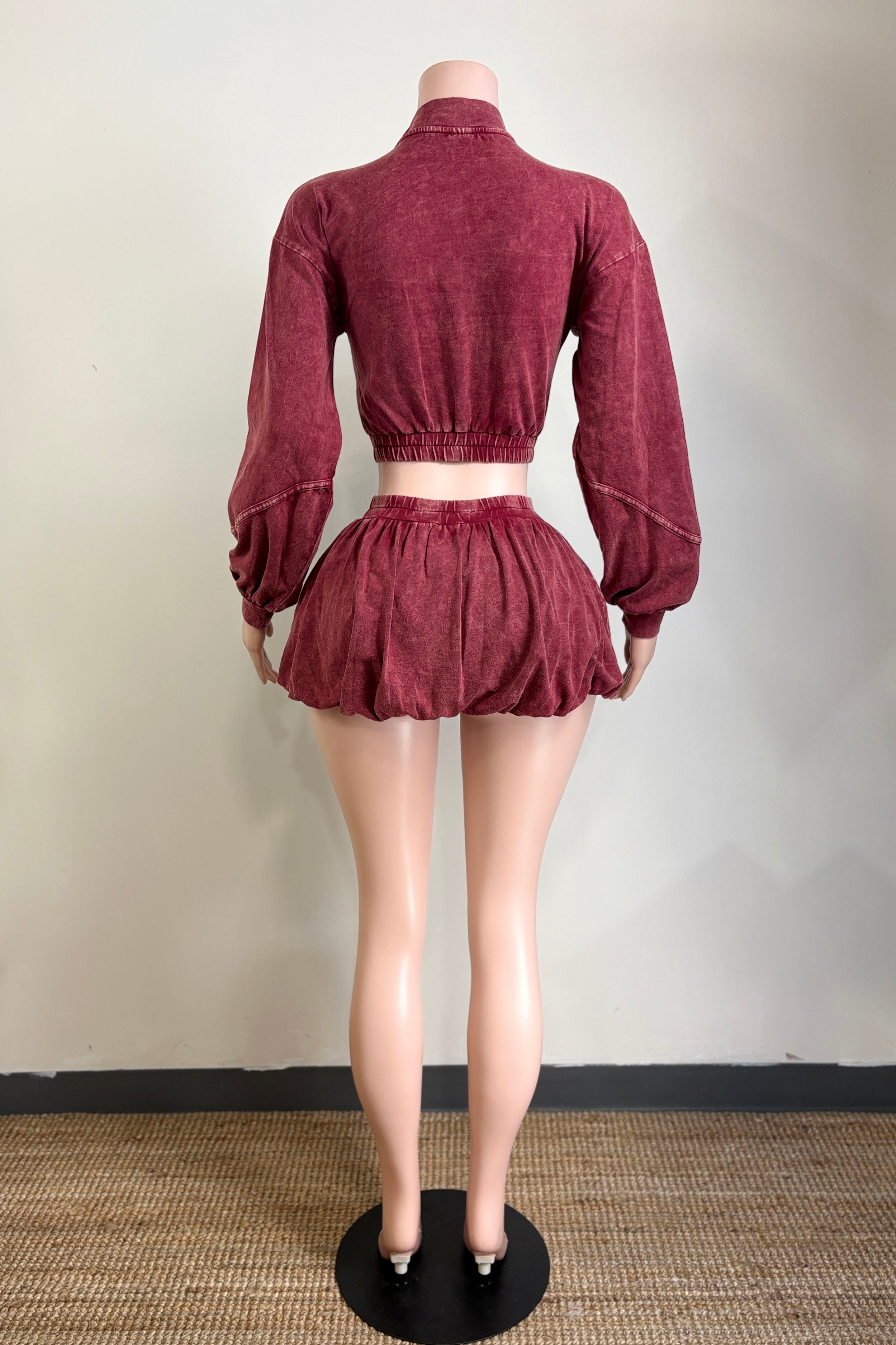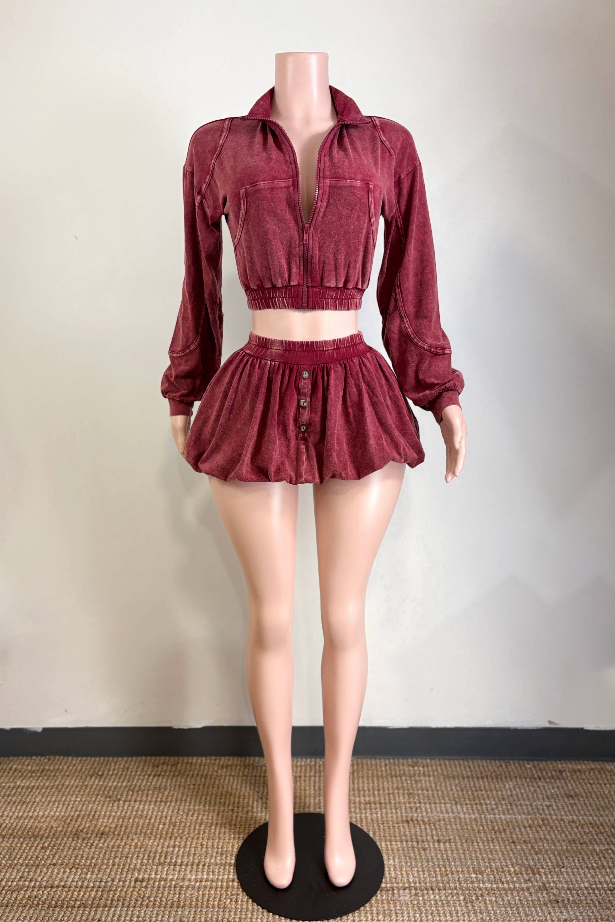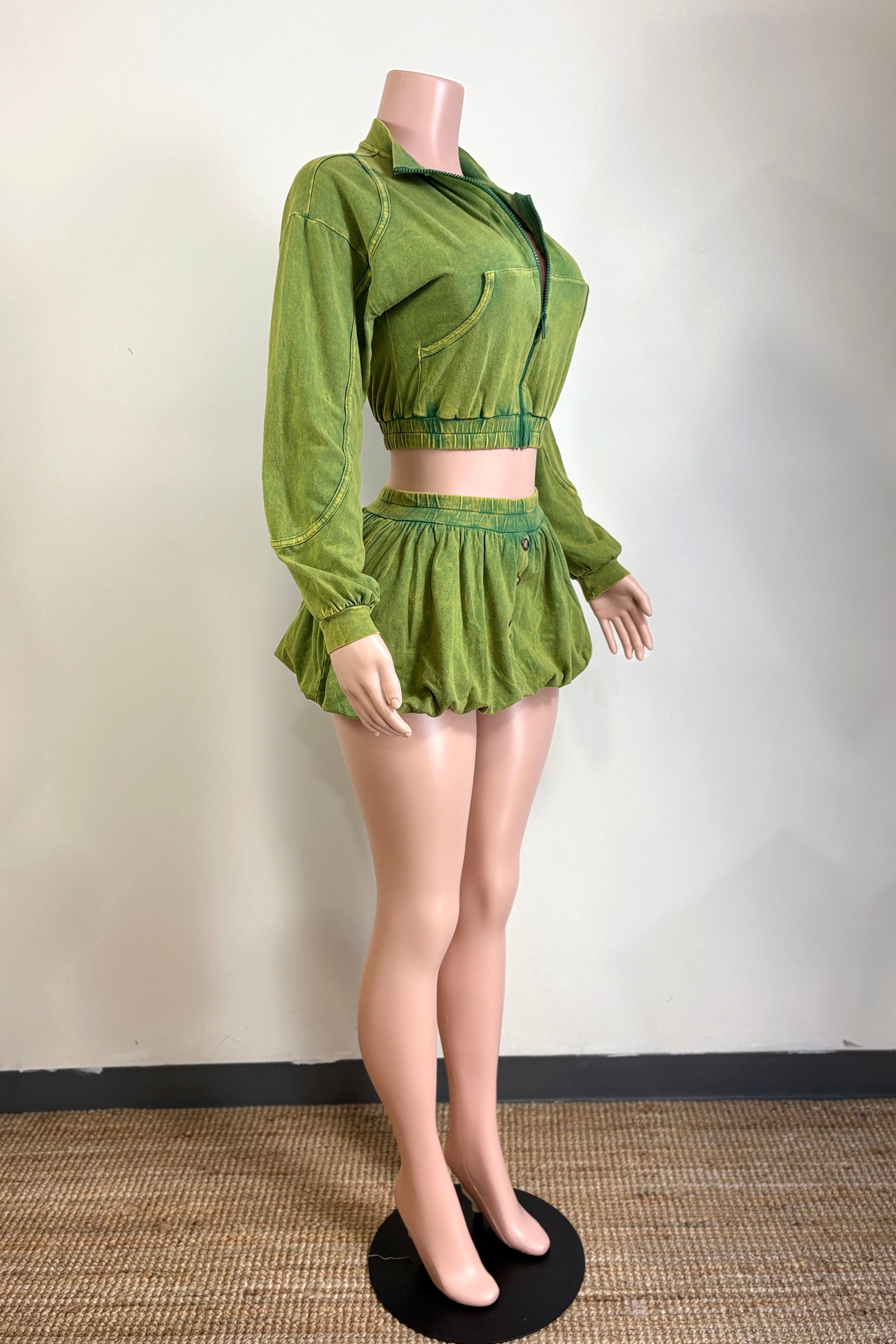 -MINERAL WASH-SET COMES WITH TOP & BOTTOM-FRONT ZIP UP-POCKETS-BUBBLE SKIRT WITH INNER SHORT-STRETCH