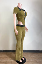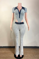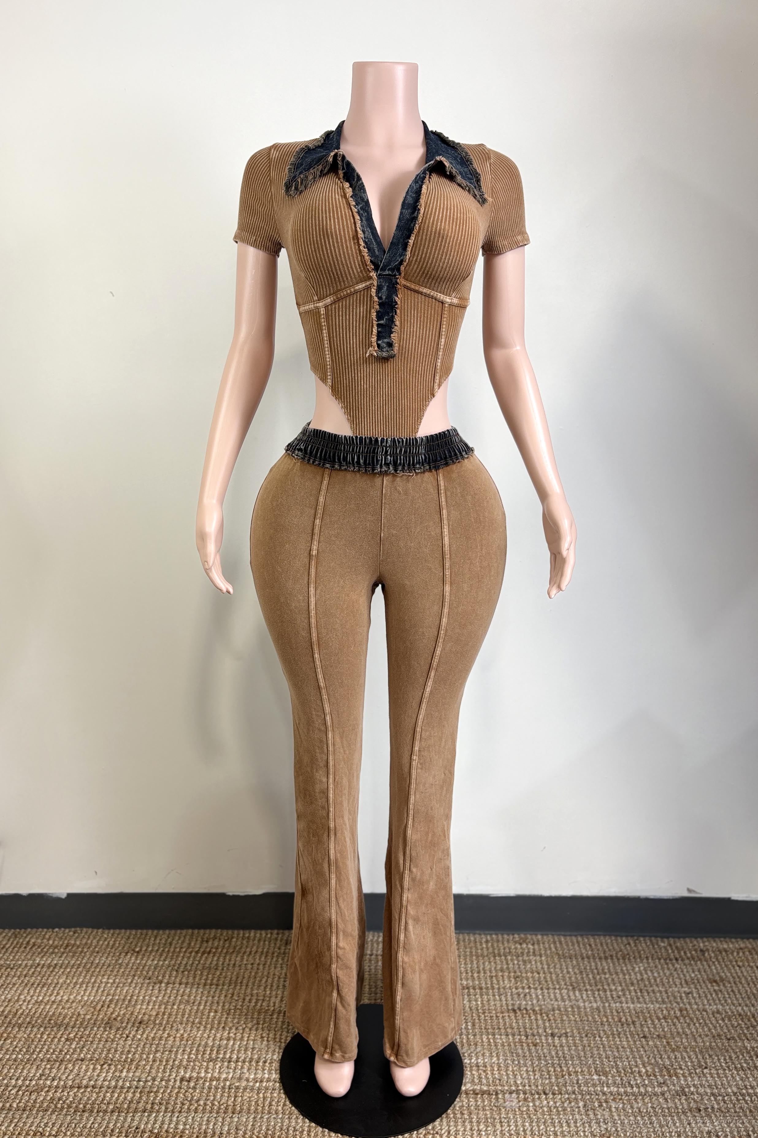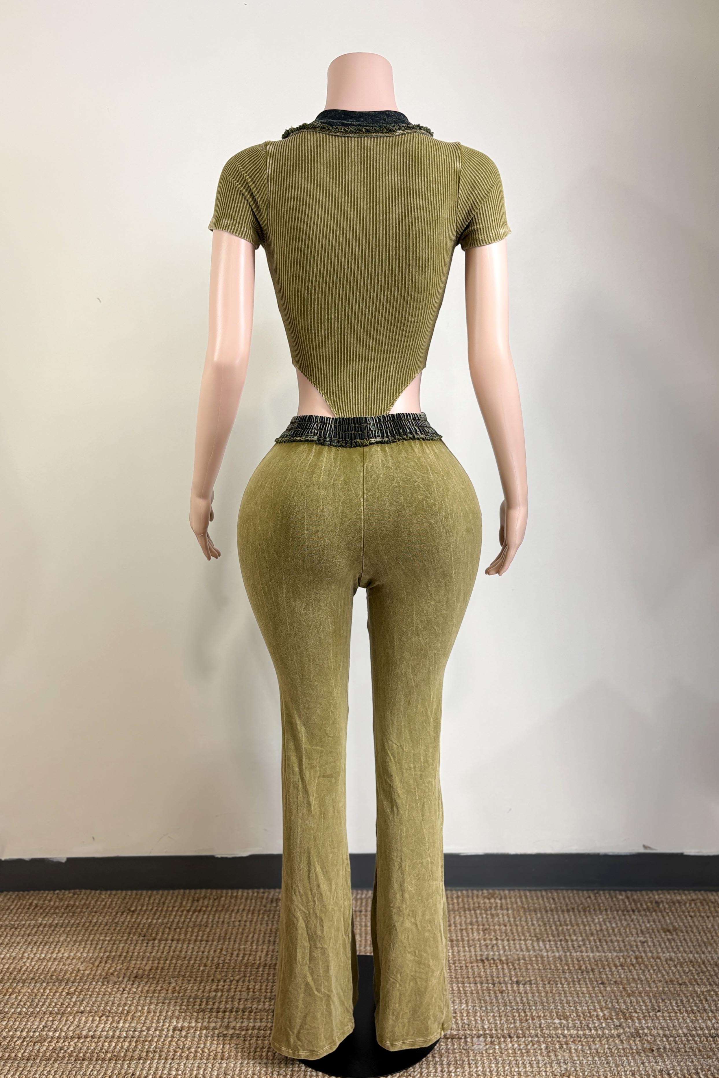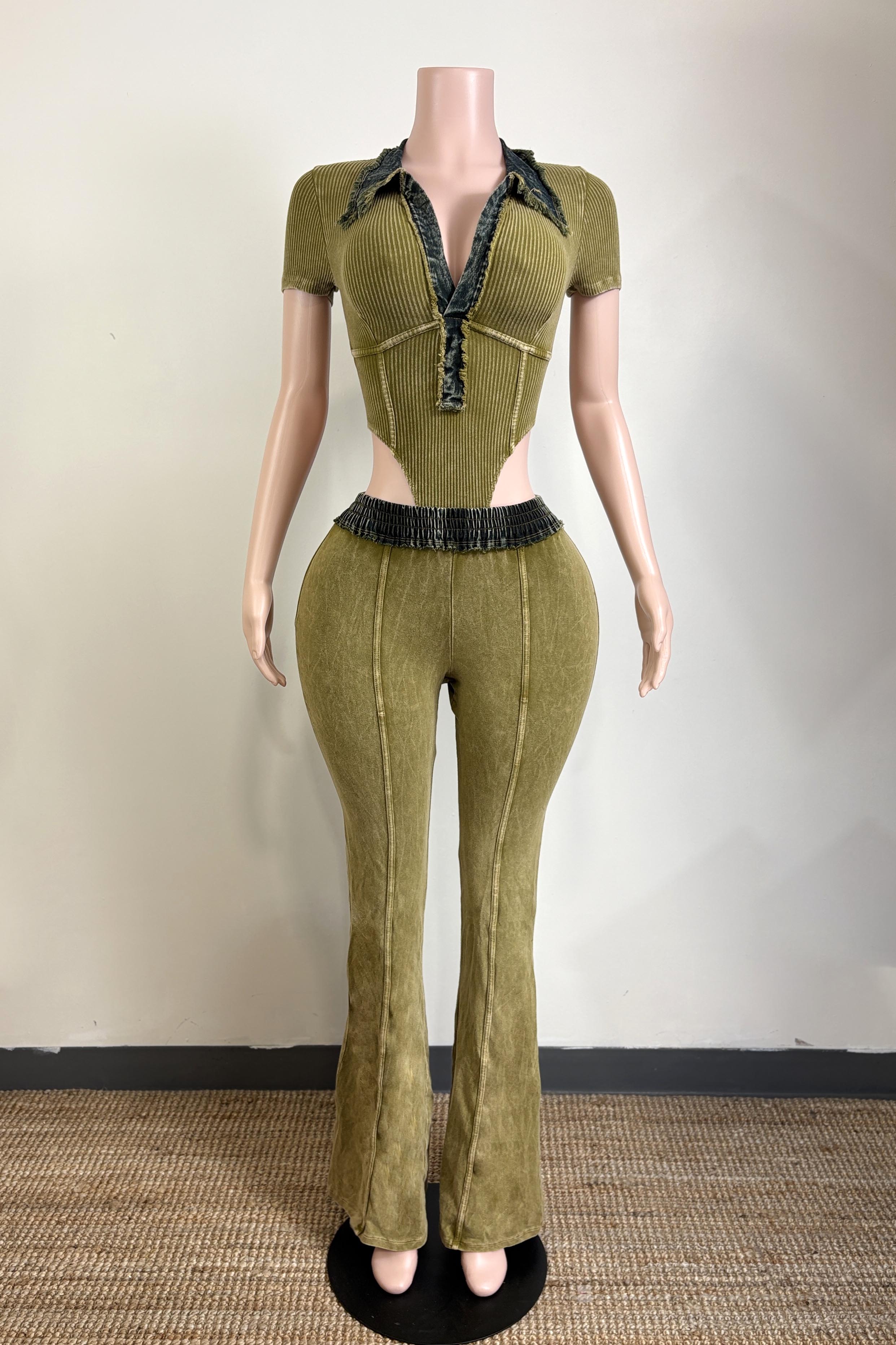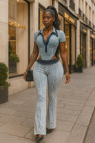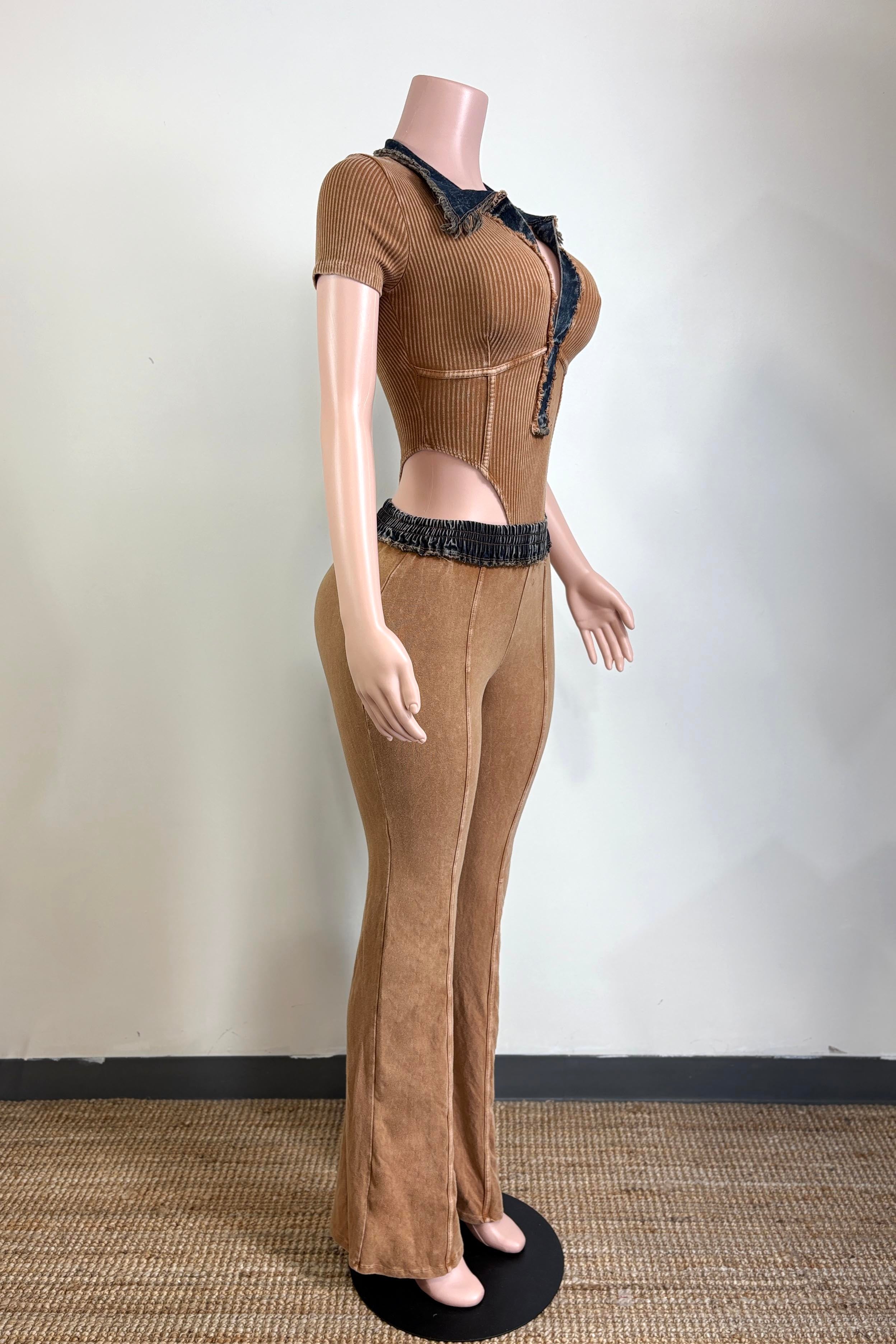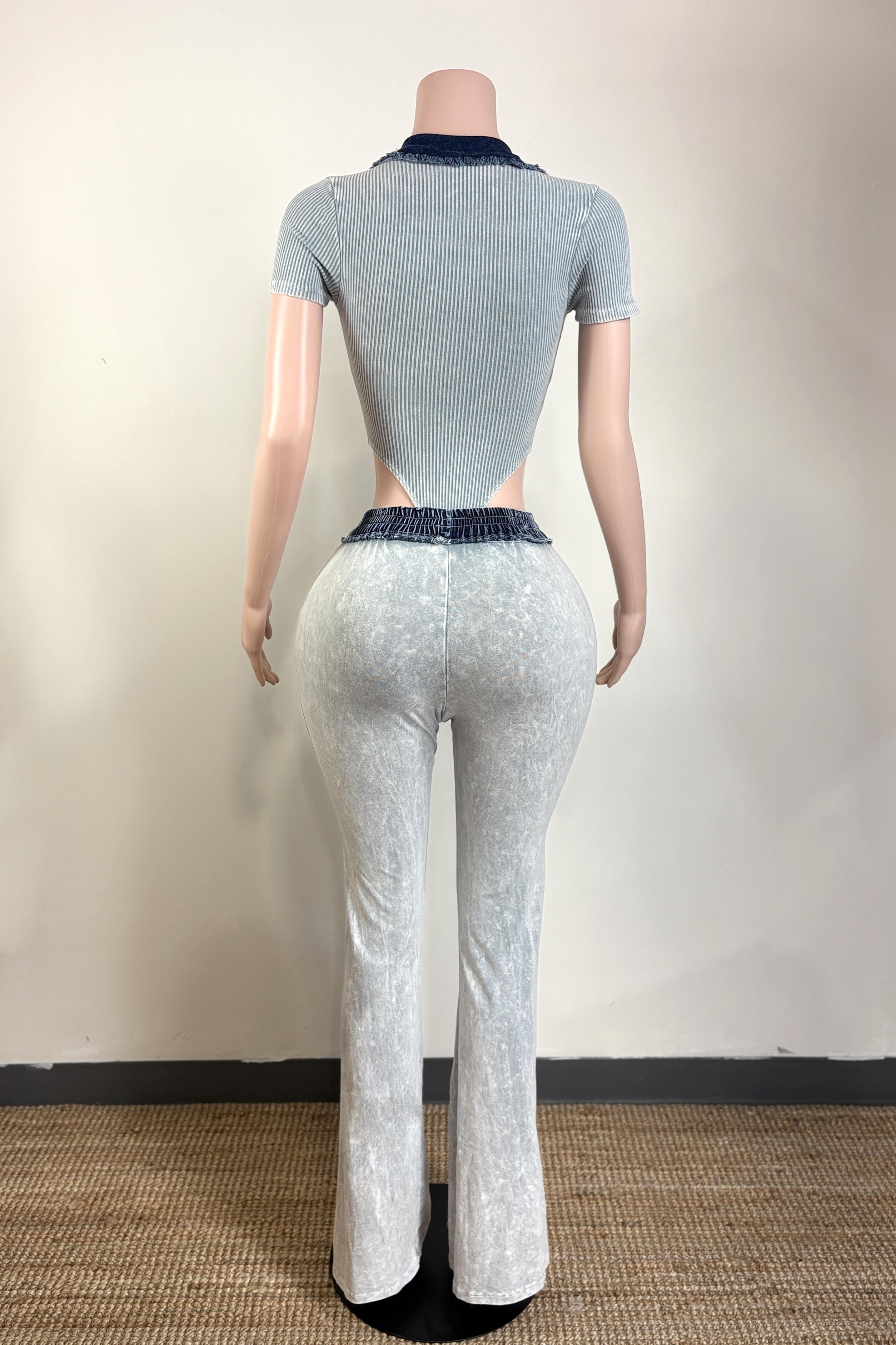 MINERAL WASH DENIM DETAIL BODYSUIT PANT SET