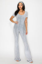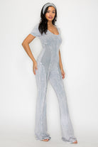 MINERAL WASH SMOCKING CONTRAST JUMPSUIT