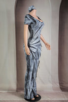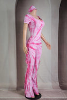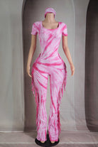 -TIE DYE-THICK STRETCH COTTON MATERIAL-JUMPSUIT COMES WITH MATCHING HEADBAND-SIDE FRINGE DETAIL-BODYCON