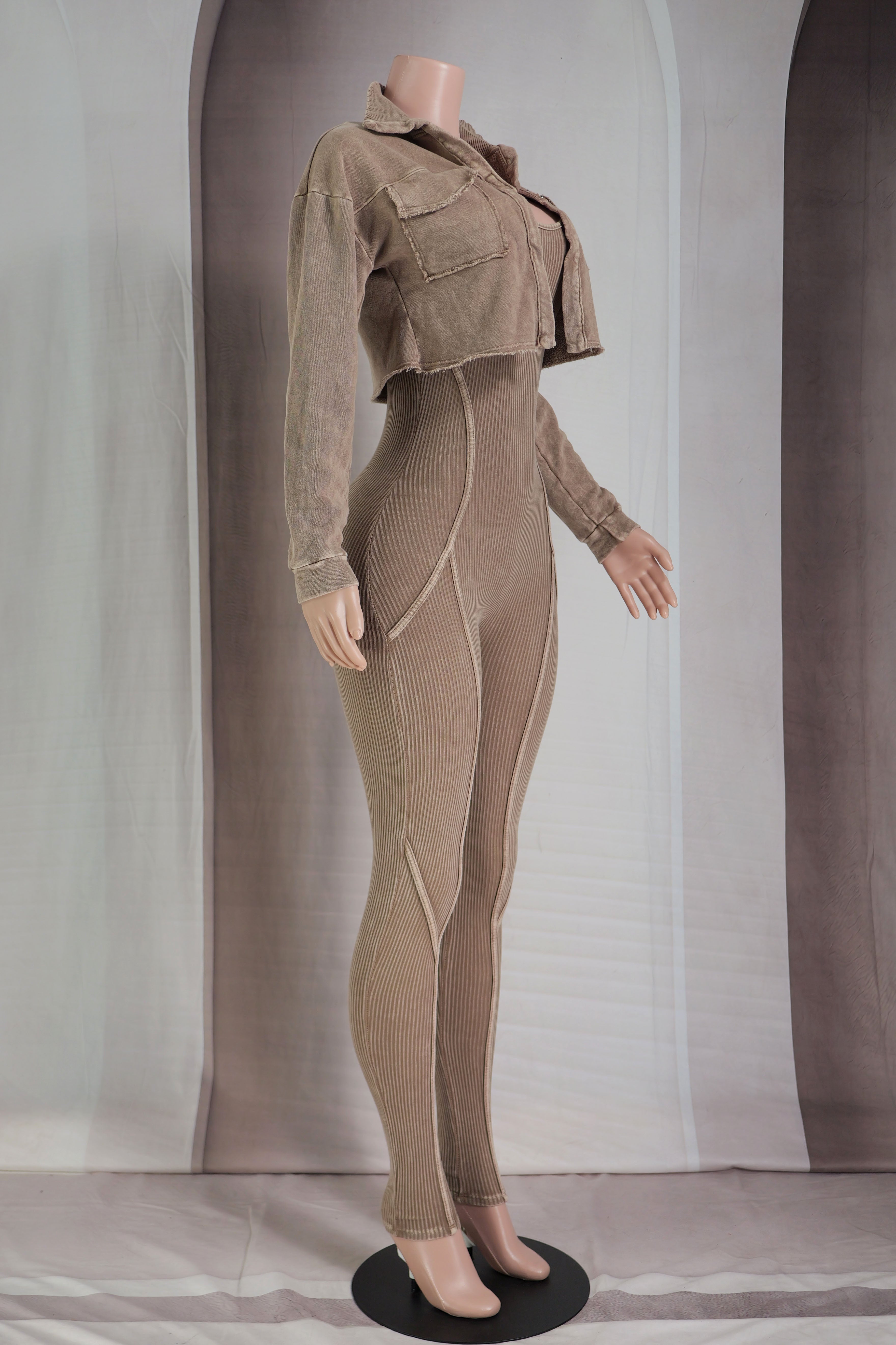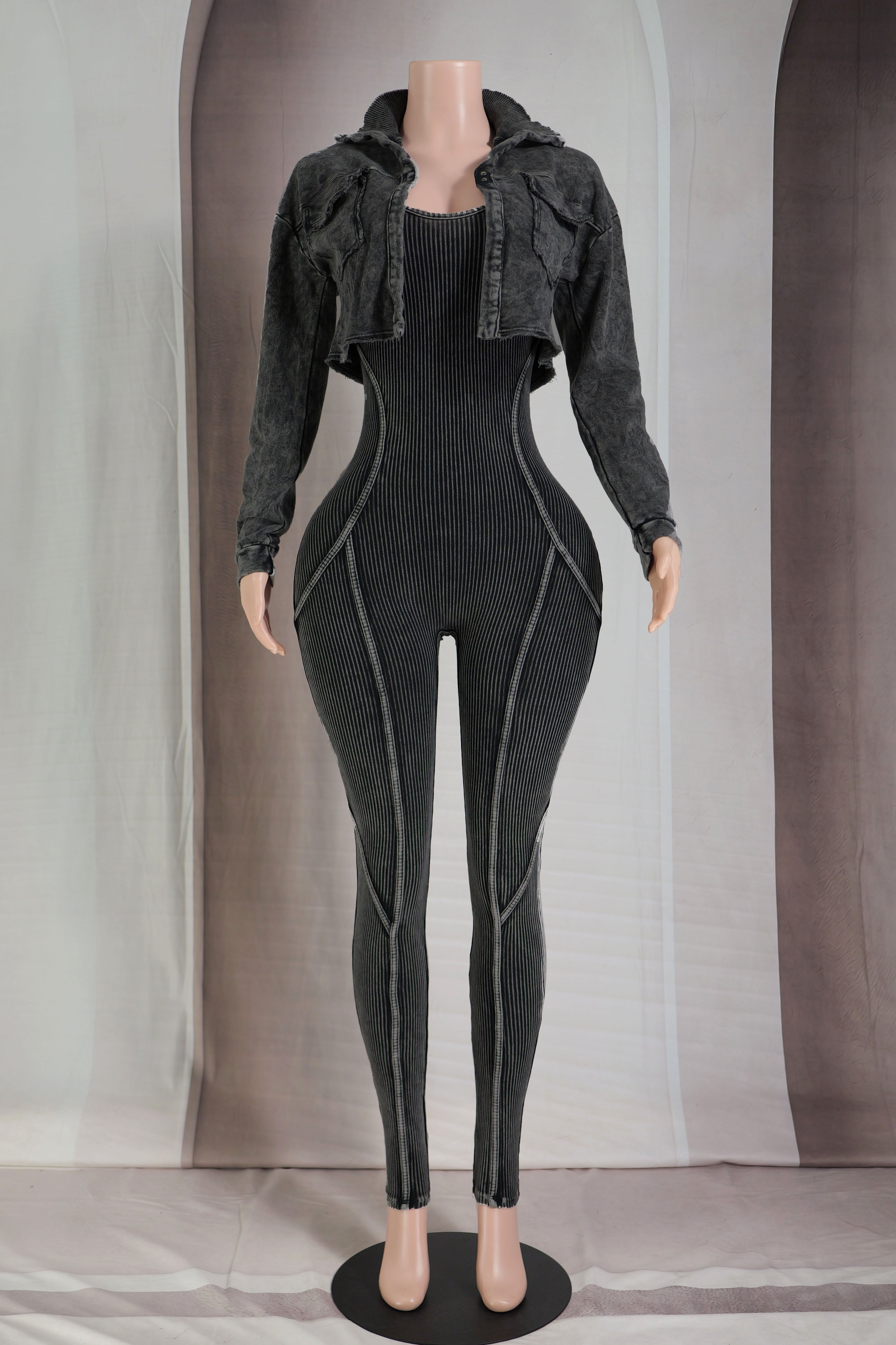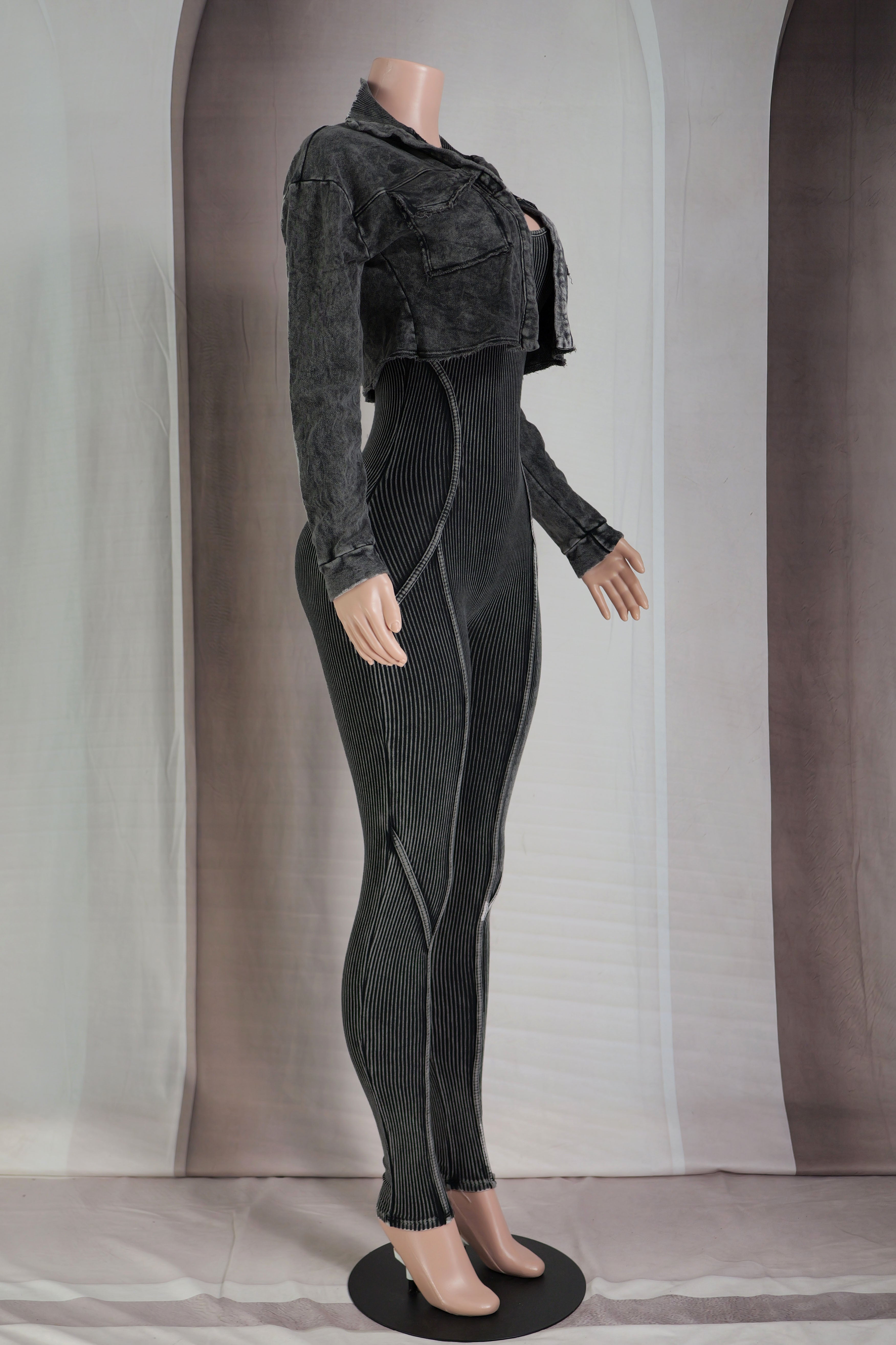 MINERAL WASH CROPPED JACKET & JUMPSUIT SET