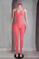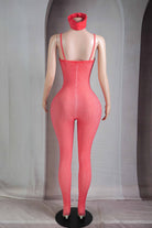 -OIL WASH-JUMPSUIT COMES WITH MATCHING HEADBAND-DEEP-V-EDGE CUT CONTOUR LINING-BODYCON-STRETCH