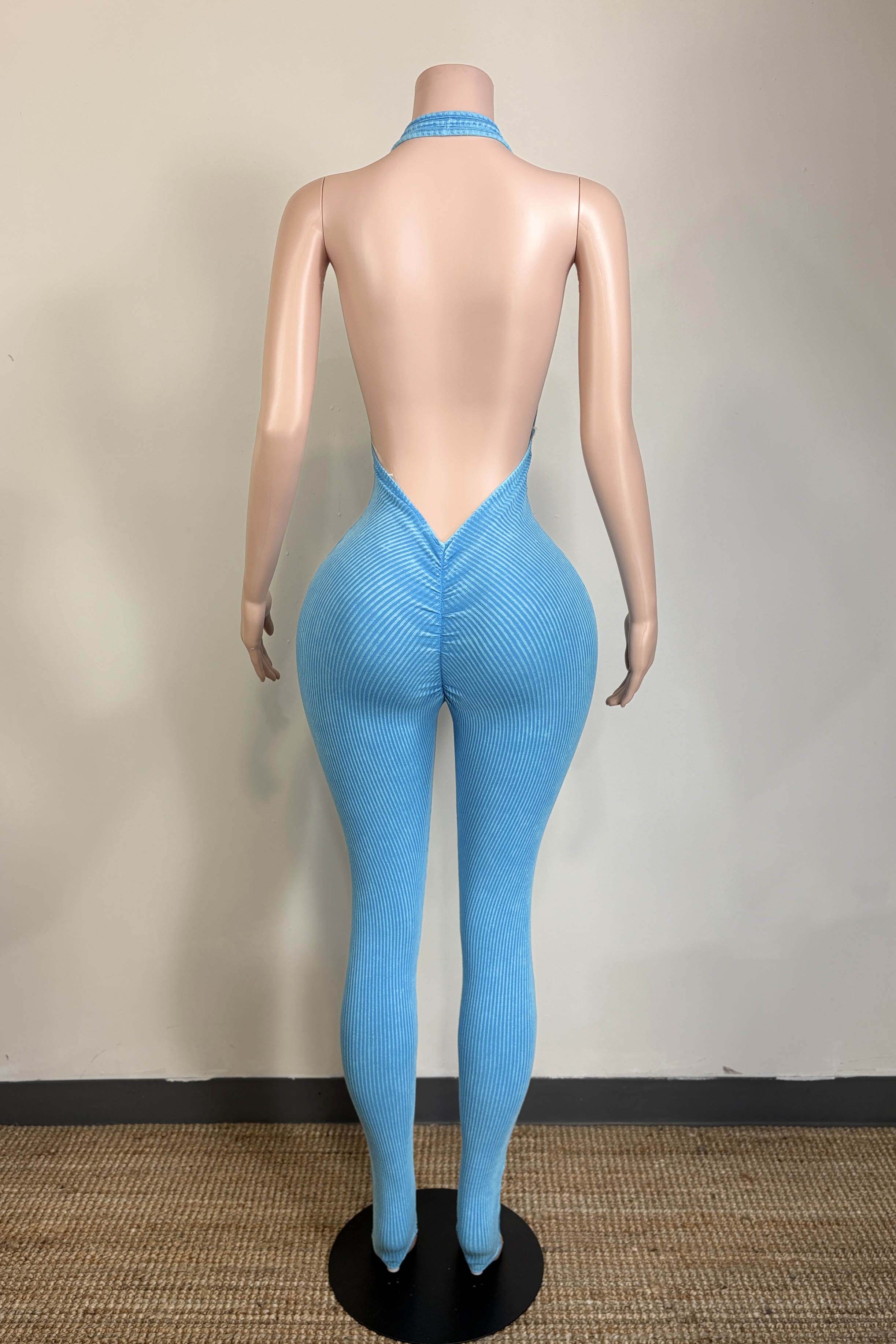 MINERAL WASH OPEN BACK BODYCON JUMPSUIT
