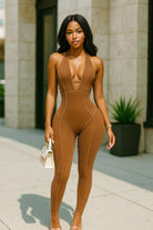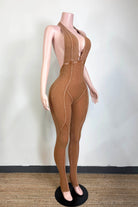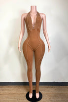 -MINERAL WASH-FRONT DEEP-V WITH BARS-HALTER NECKLINE-OPEN BACK-BODYCON-STRETCH-TALL GIRL FRIENDLY