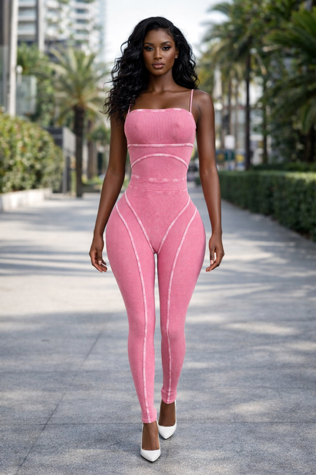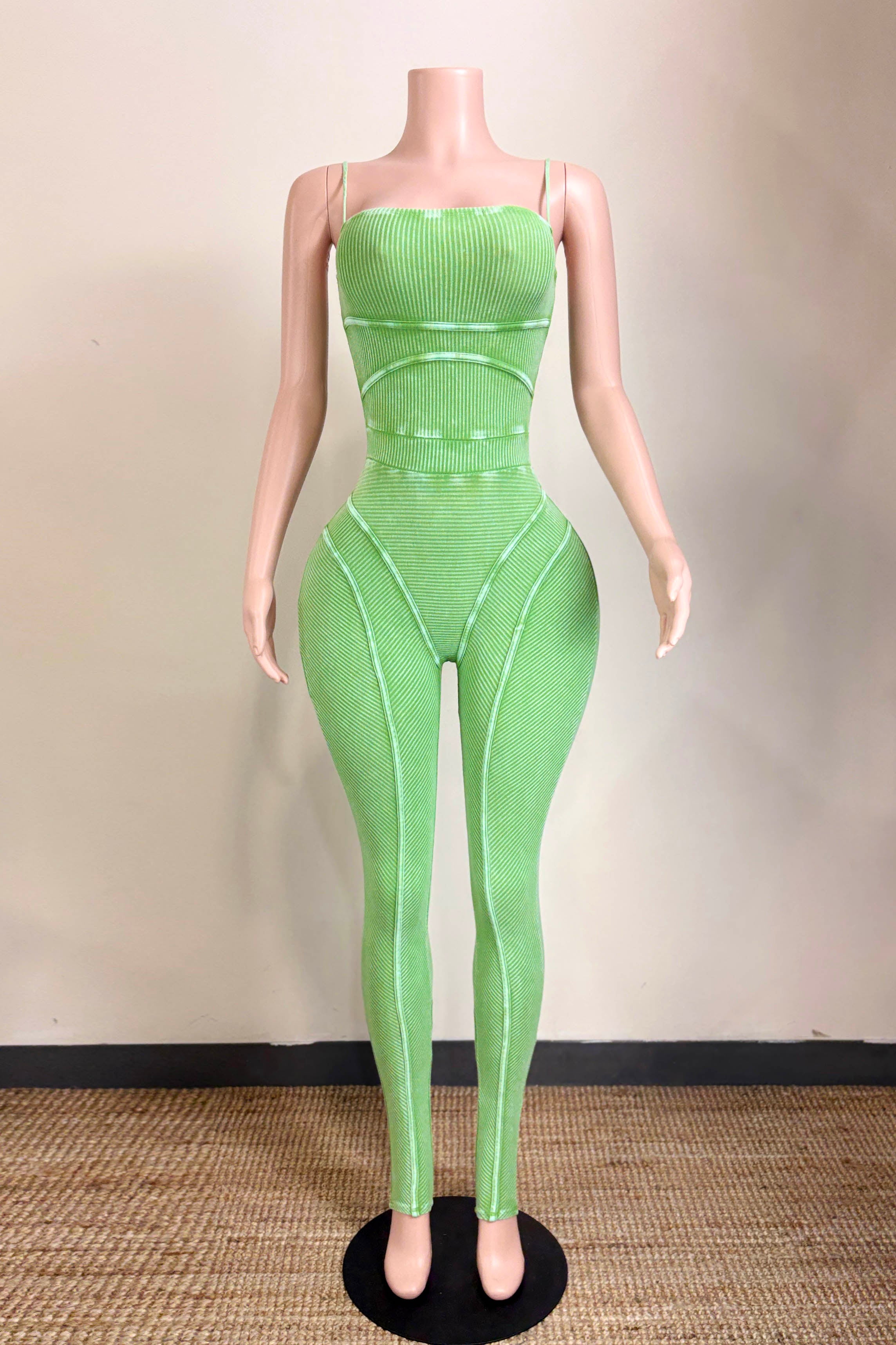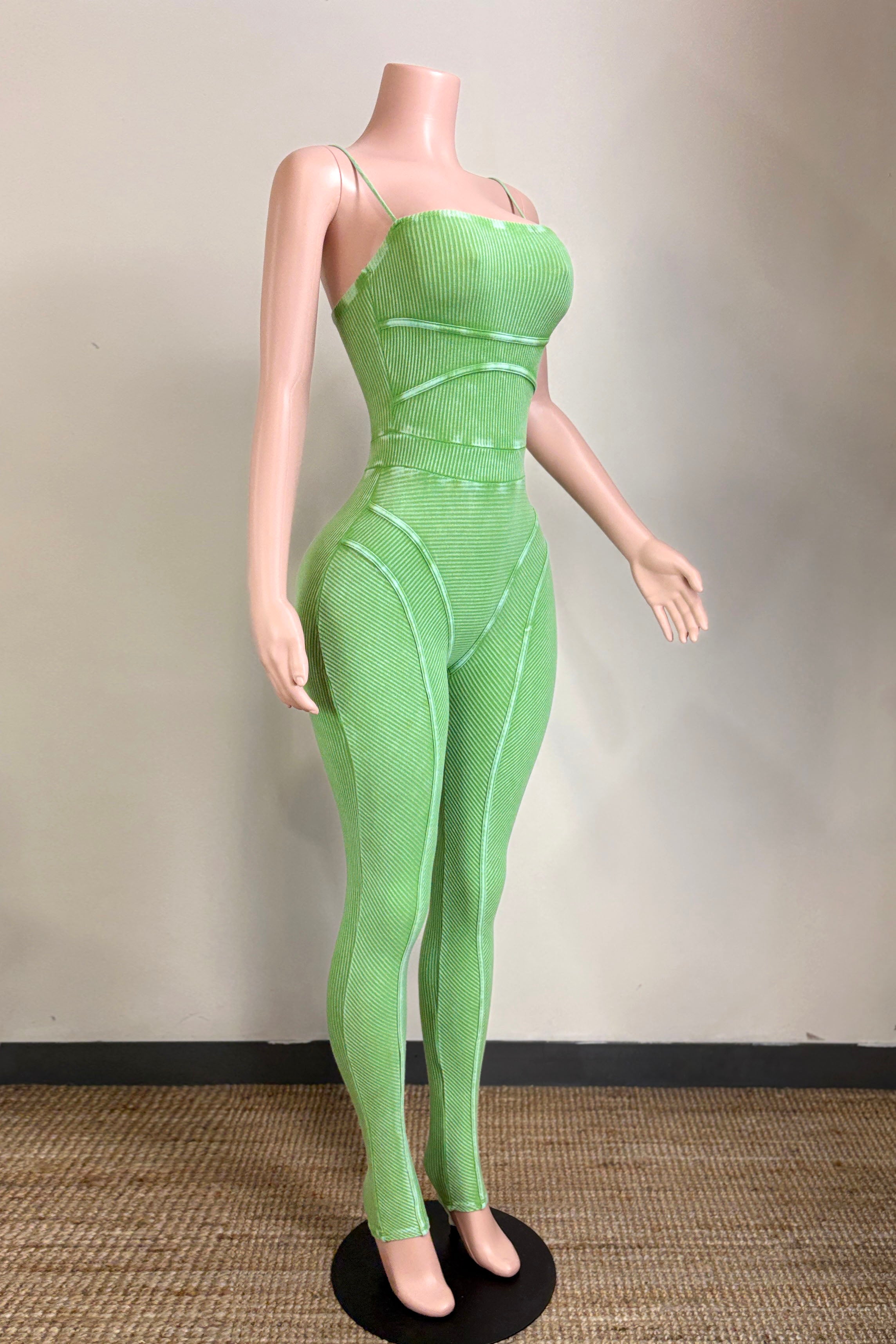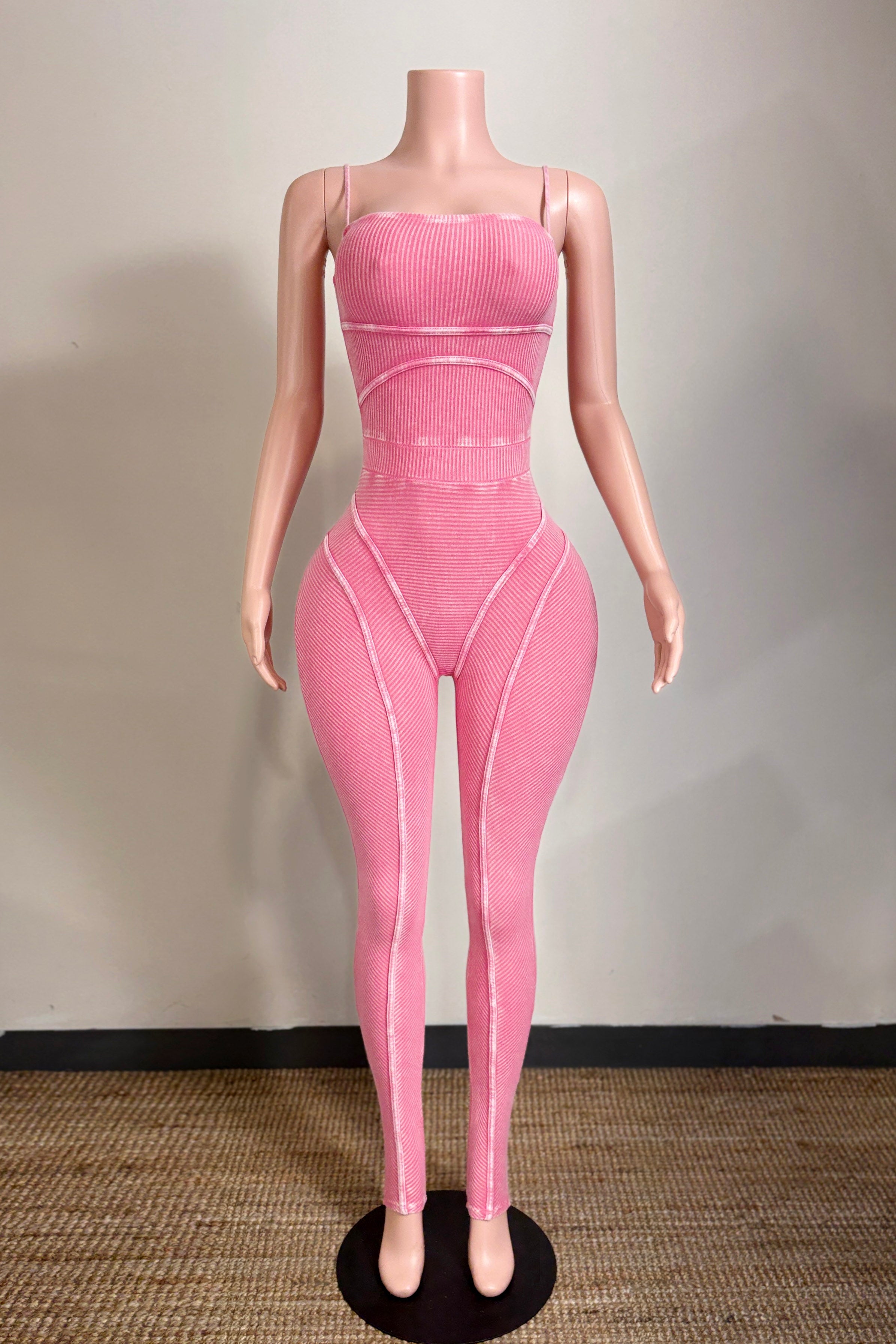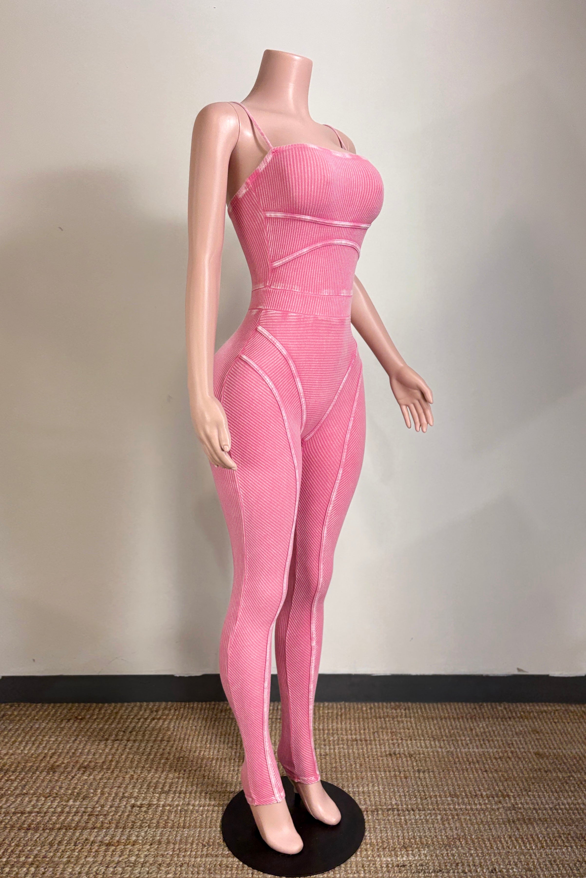 MINERAL WASH CONTOUR LINING SPAGHETTI STRAP JUMPSUIT