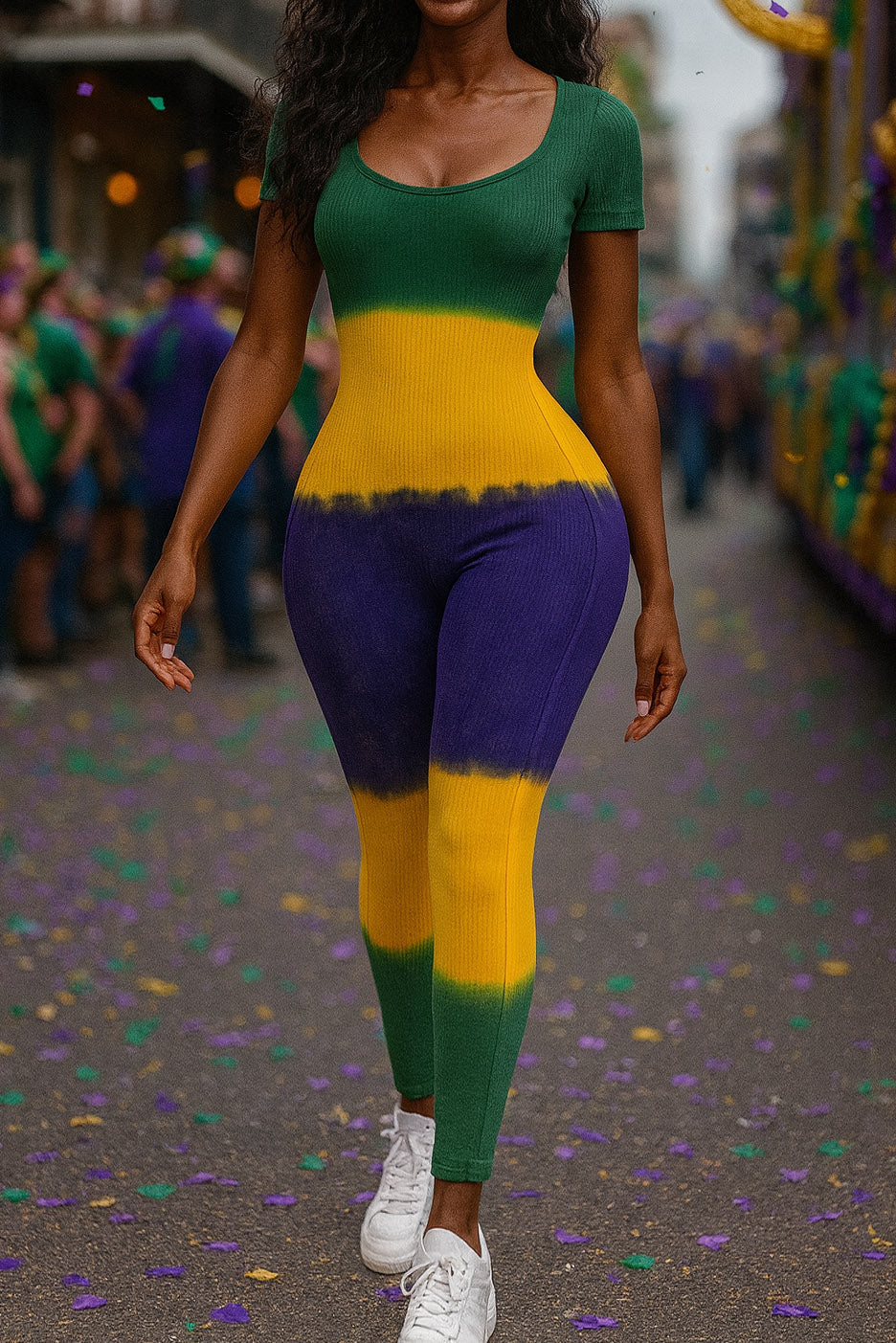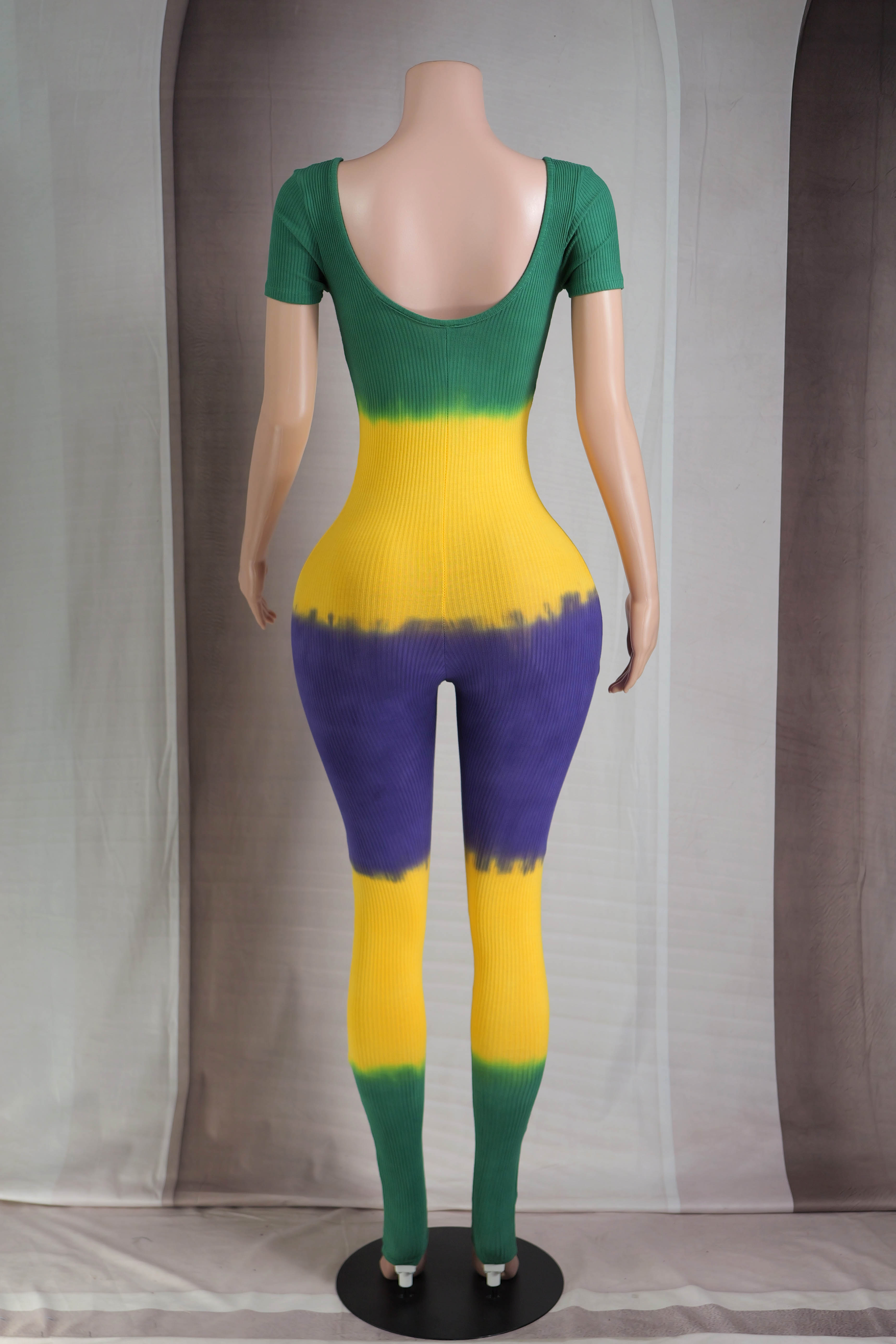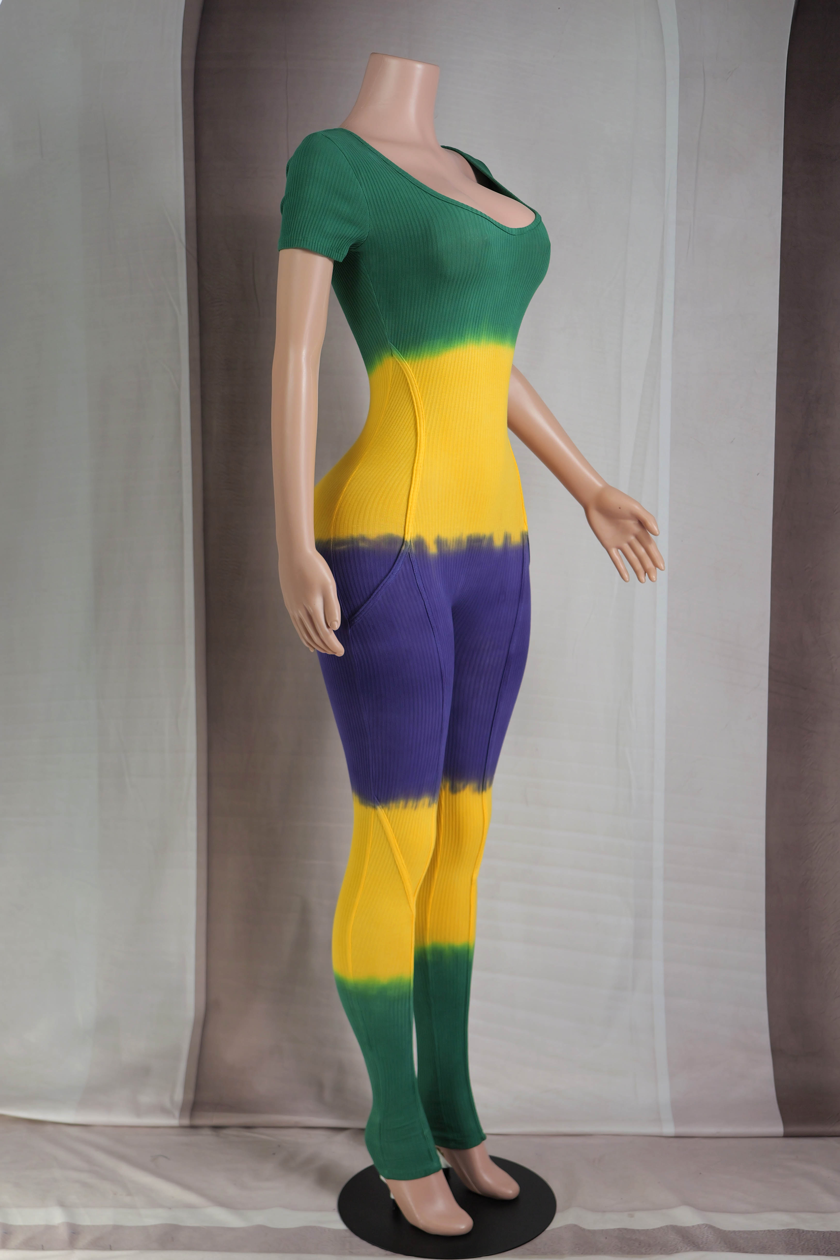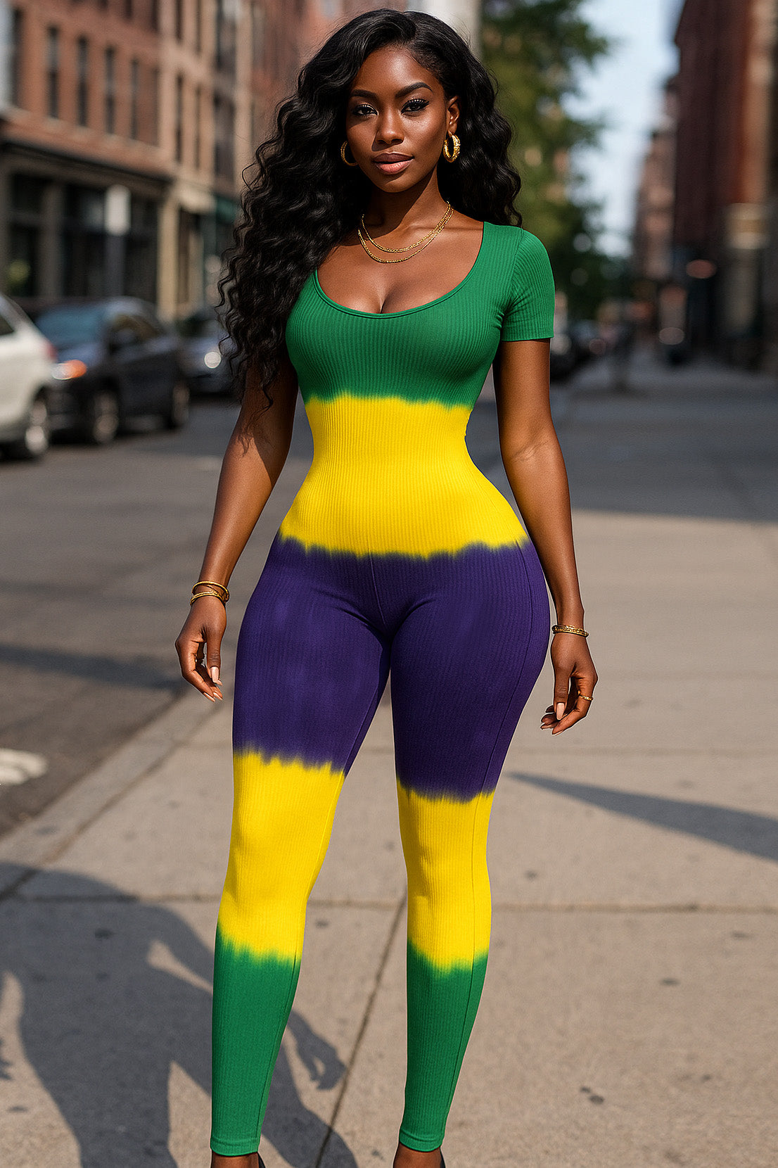 MARDI GRAS STRIPE TIE DYE CONTOUR JUMPSUIT