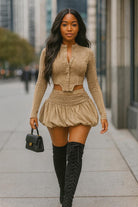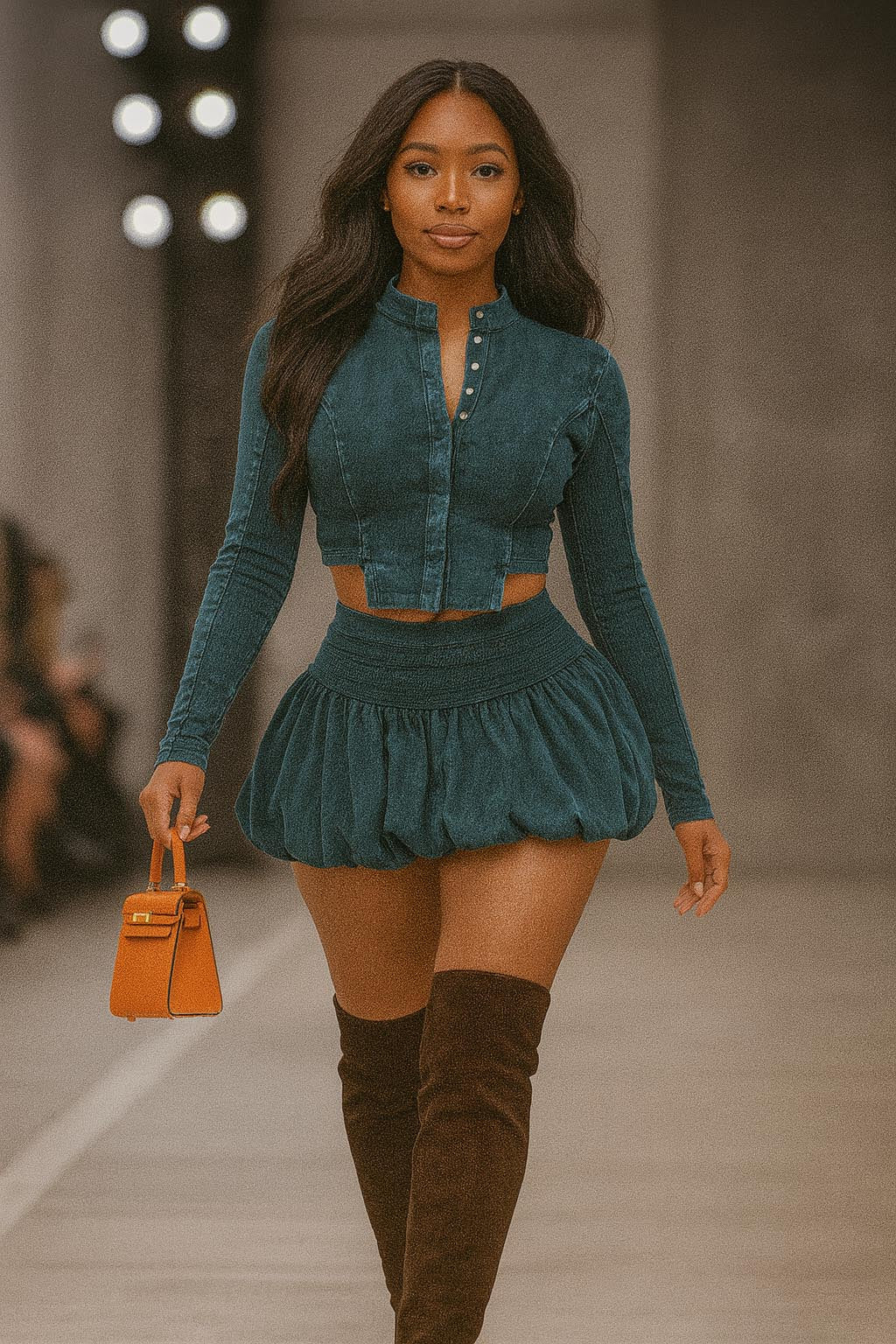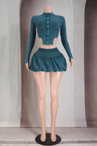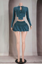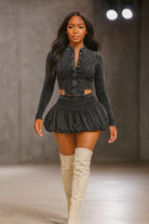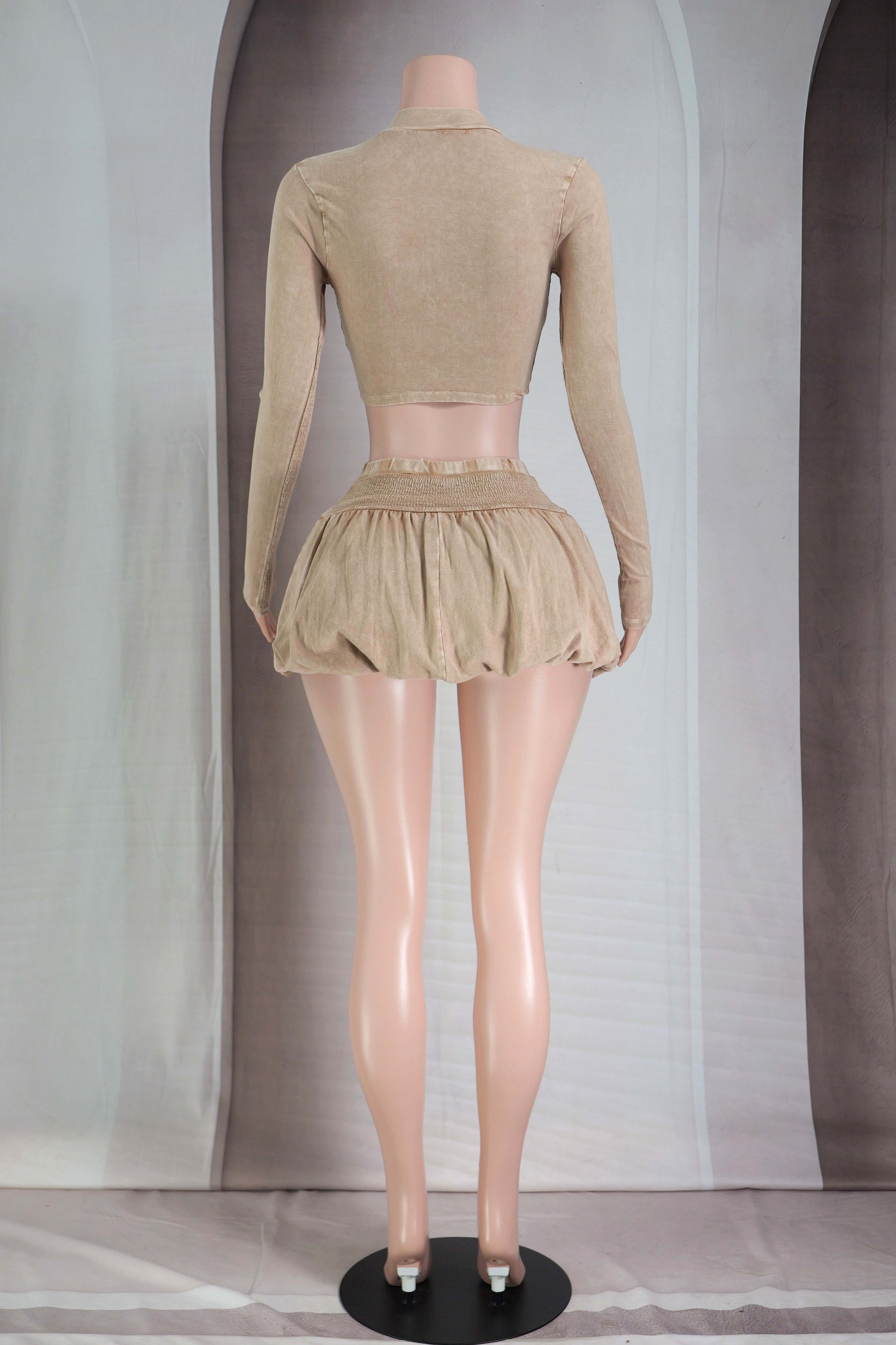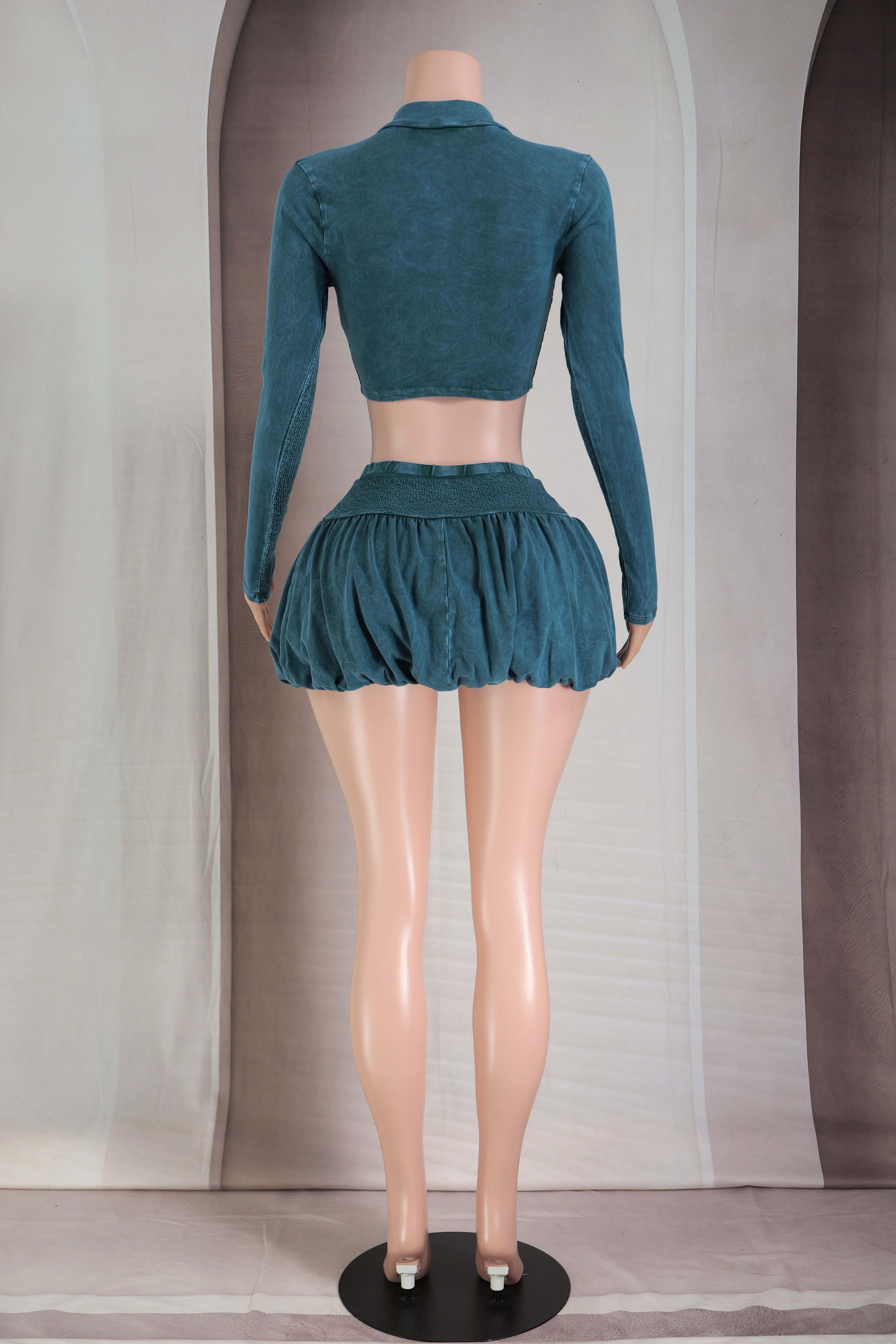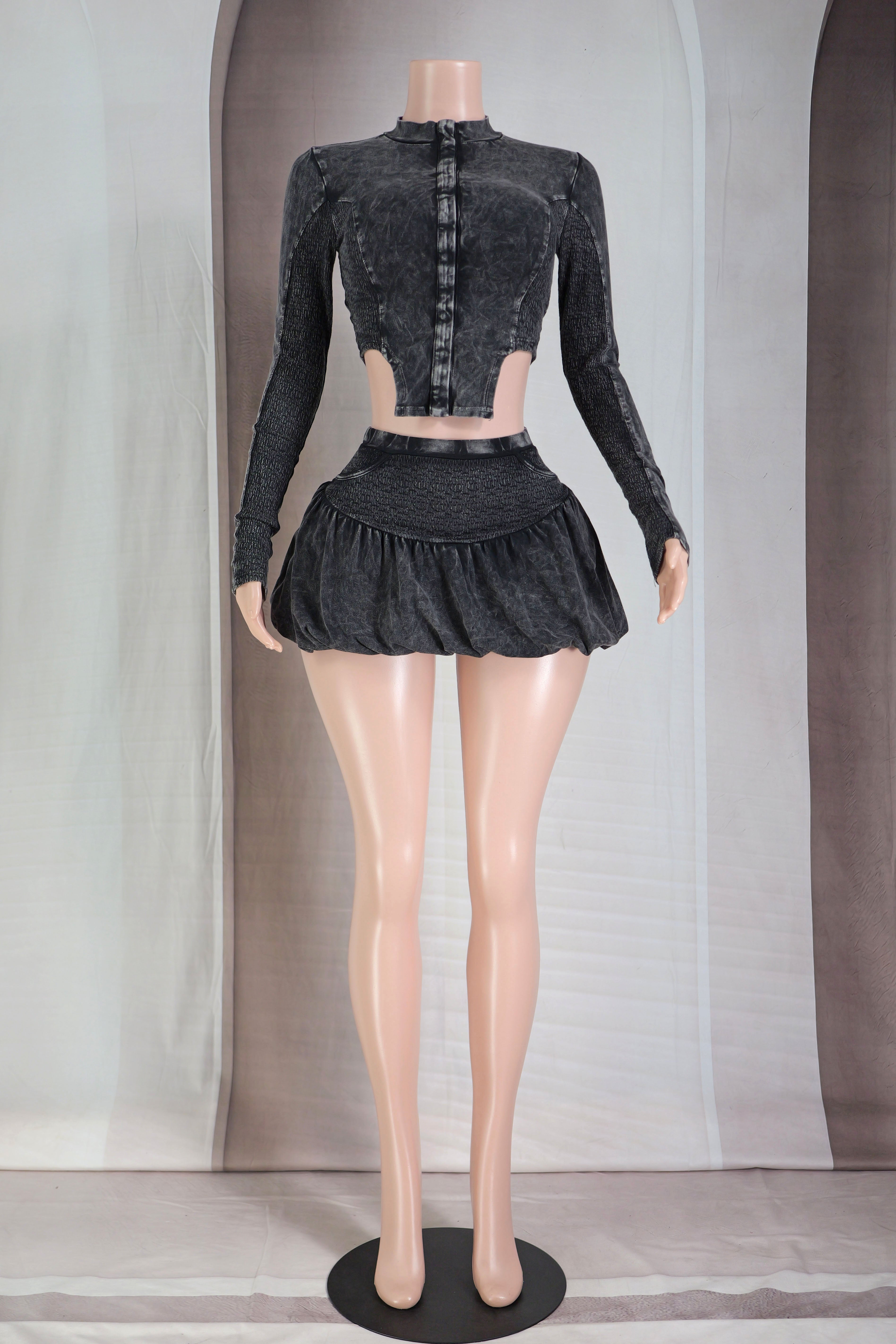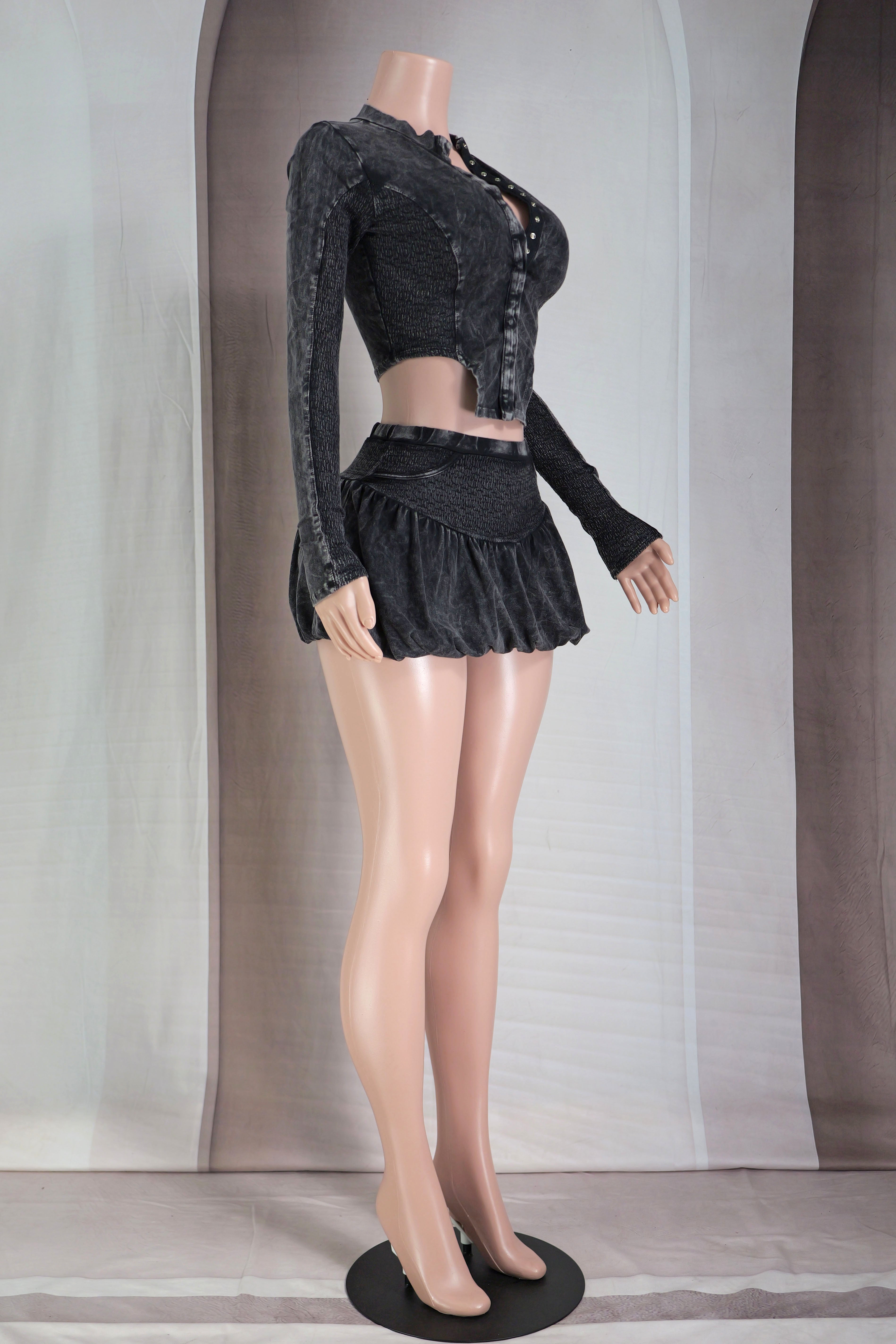 MINERAL WASH CONTRAST JACKET & BUBBLE SKORT SET