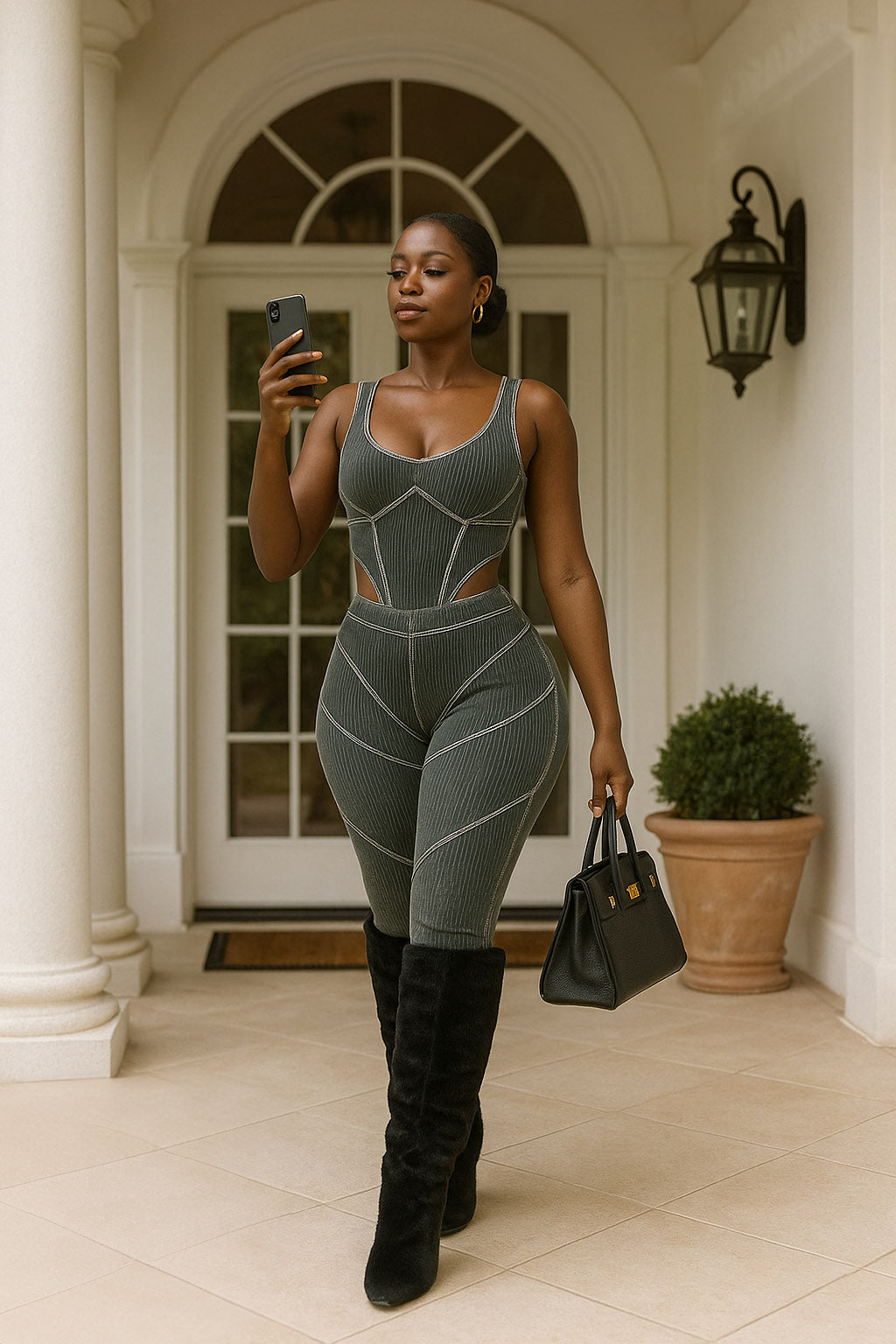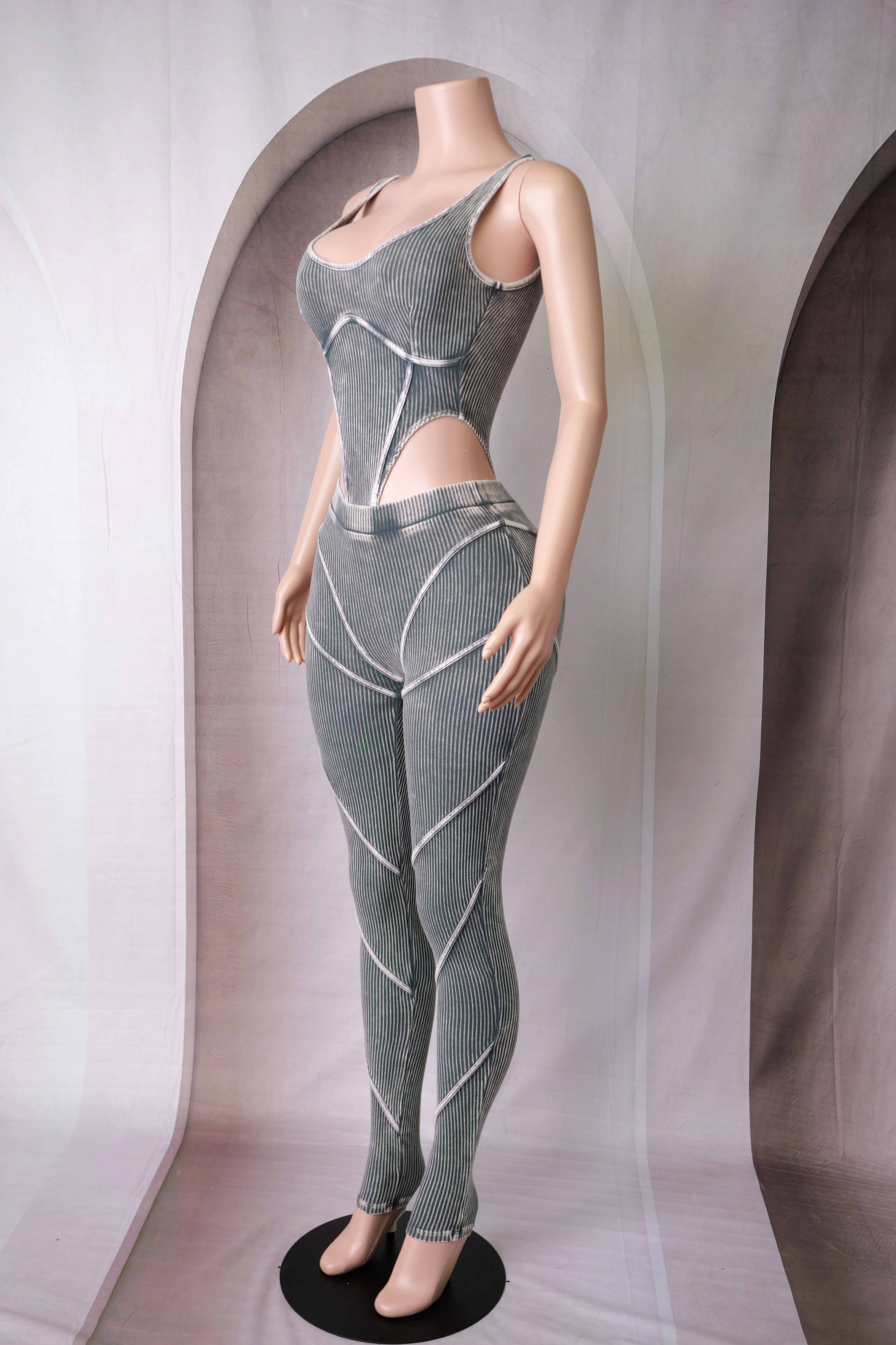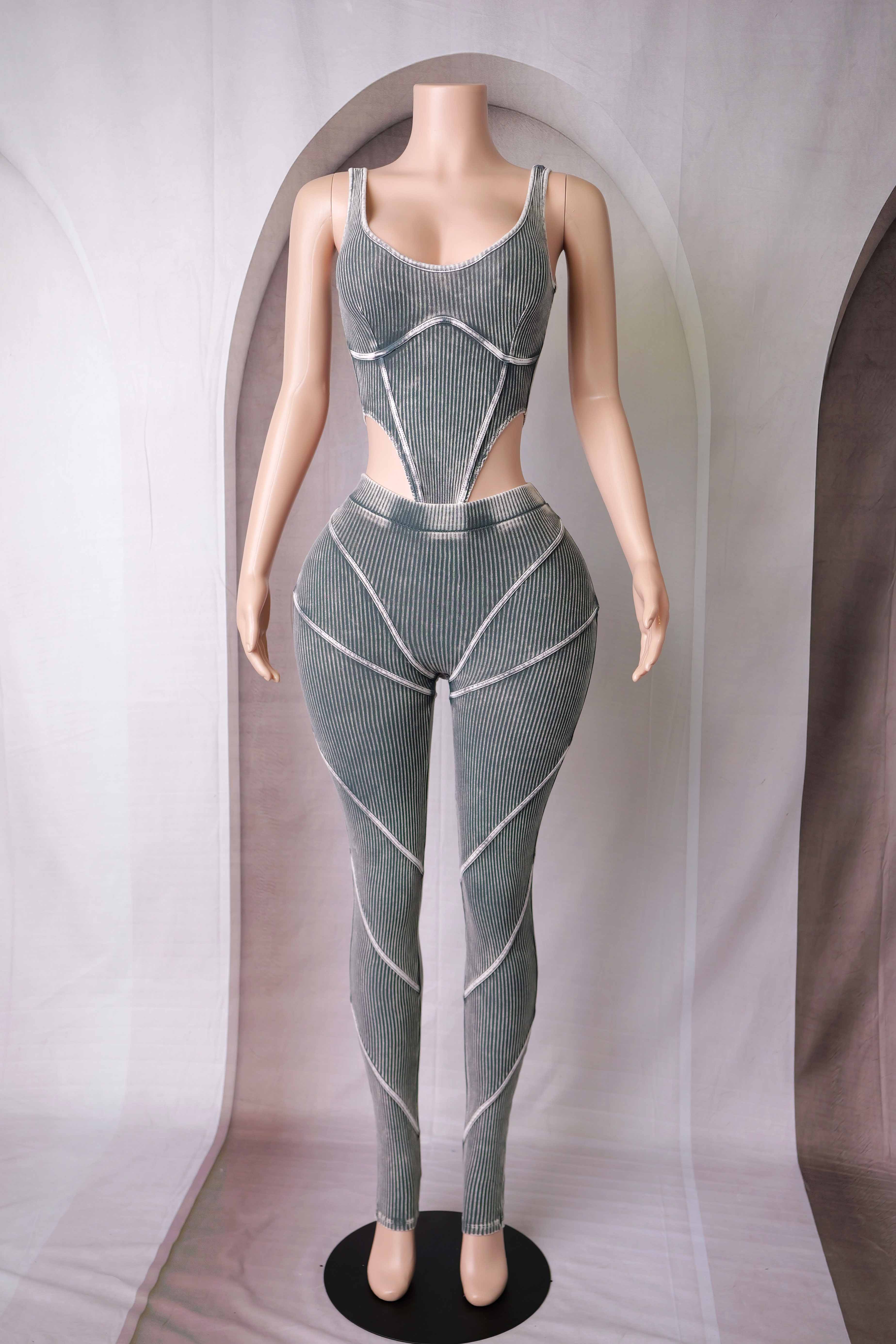 MINERAL WASH CONTOUR LINING BODYSUIT & LEGGING SET