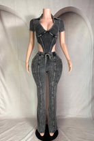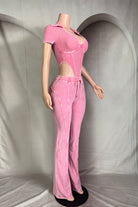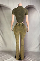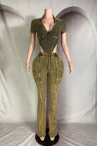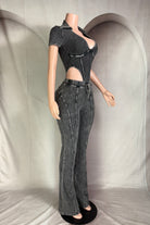 -MINERAL WASH-SET COMES WITH TOP & BOTTOM-DEEP-V COLLARED BODYSUIT-HIGH CUT-ELASTIC WAISTBAND PANT-FLARE-TALL GIRL FRIENDLY-STRETCH