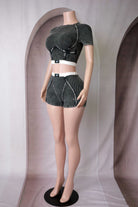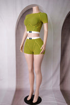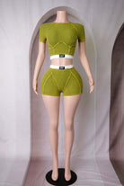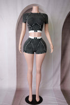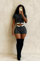 -MINERAL WASH-SET COMES WITH TOP & BOTTOM-BLACK SATIN LABEL DETAIL-CONTOUR LINING-CROPPED MOCK NECK-MICRO SHORT-ELASTIC WAISTBAND-STRETCH-BODYCON