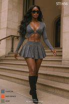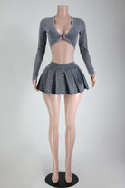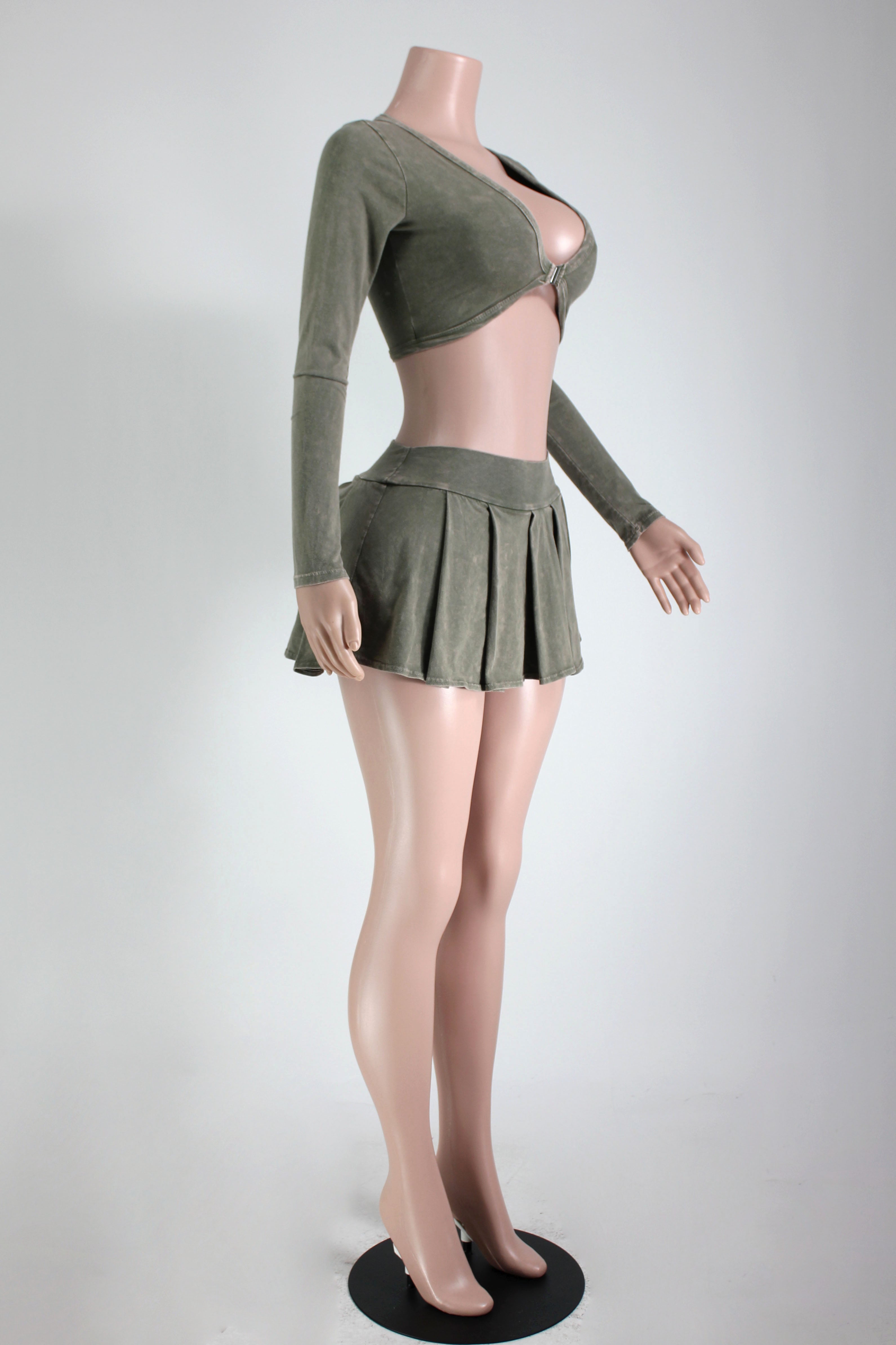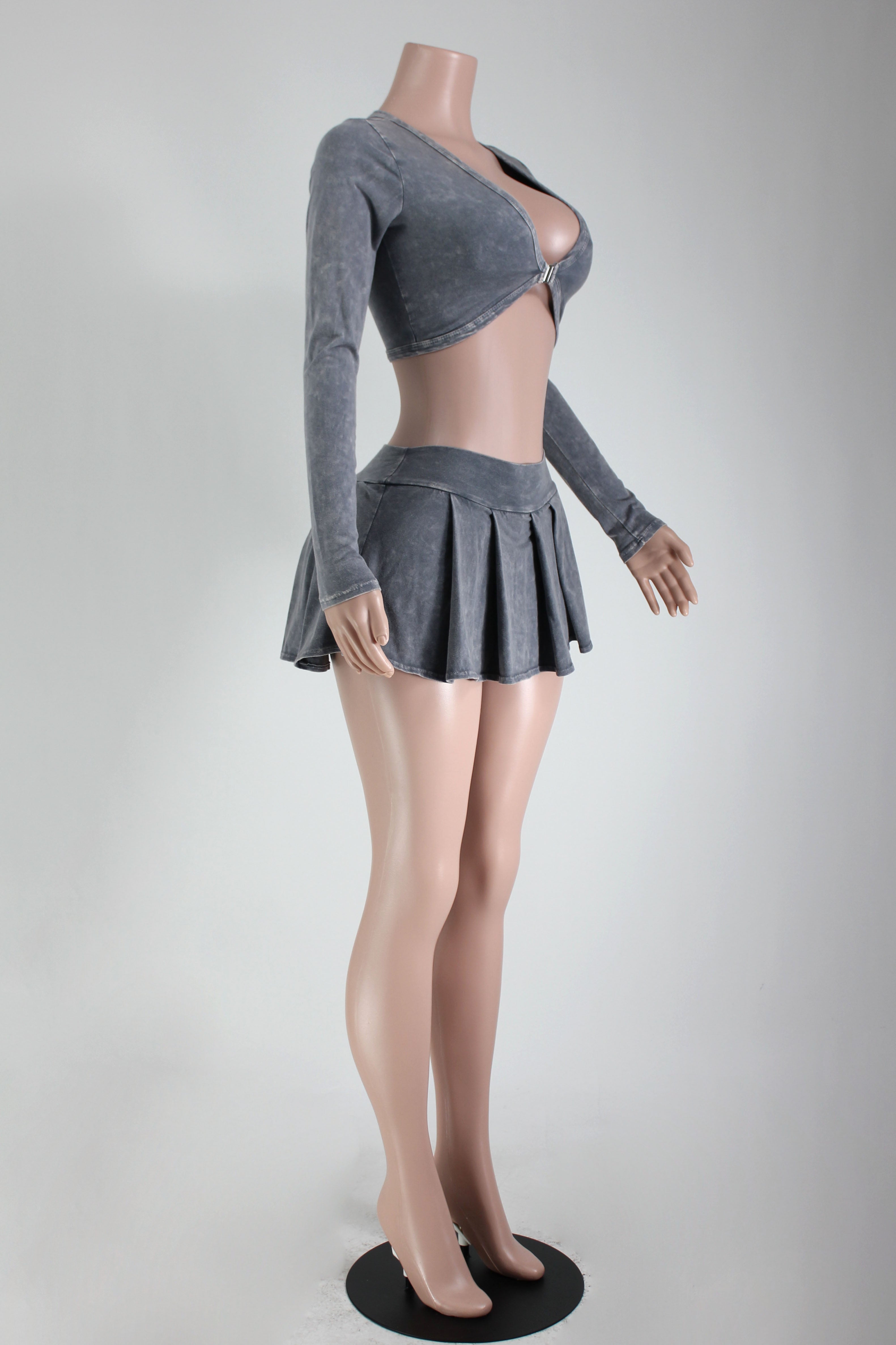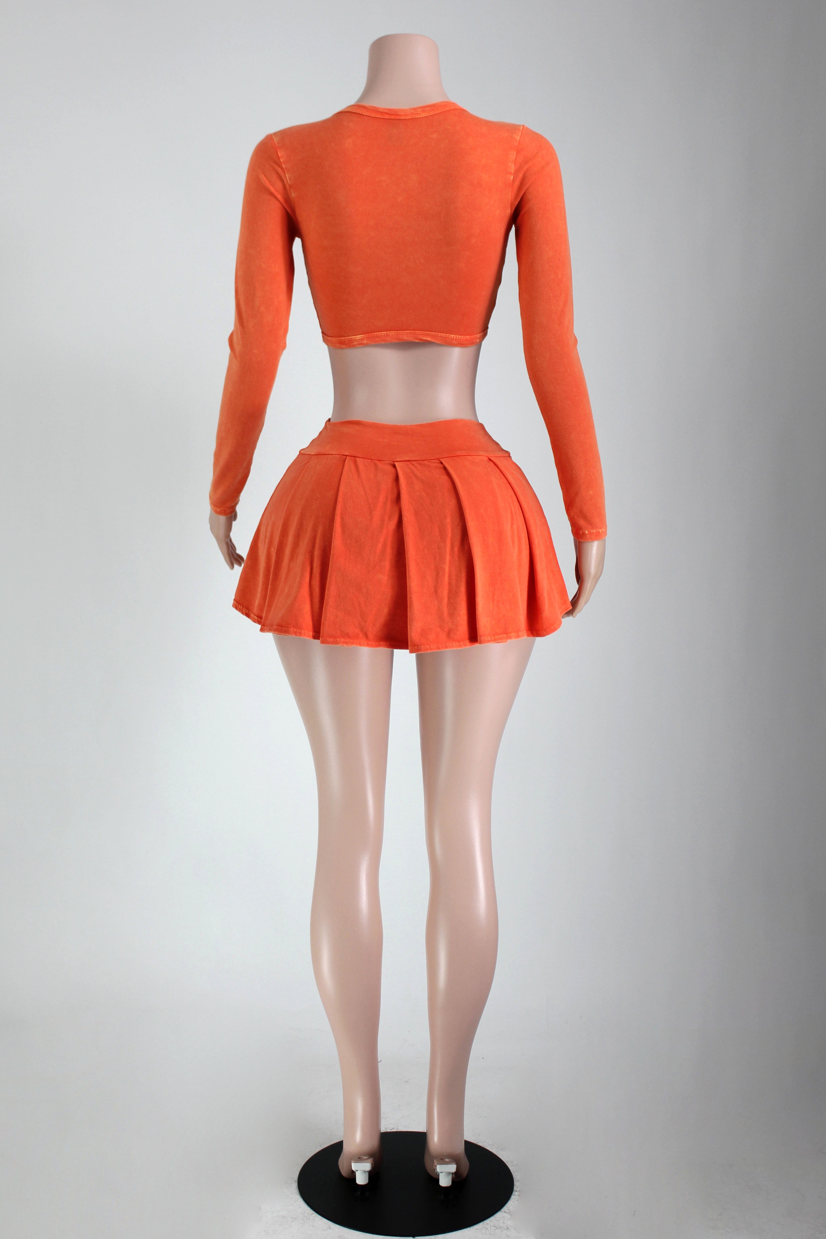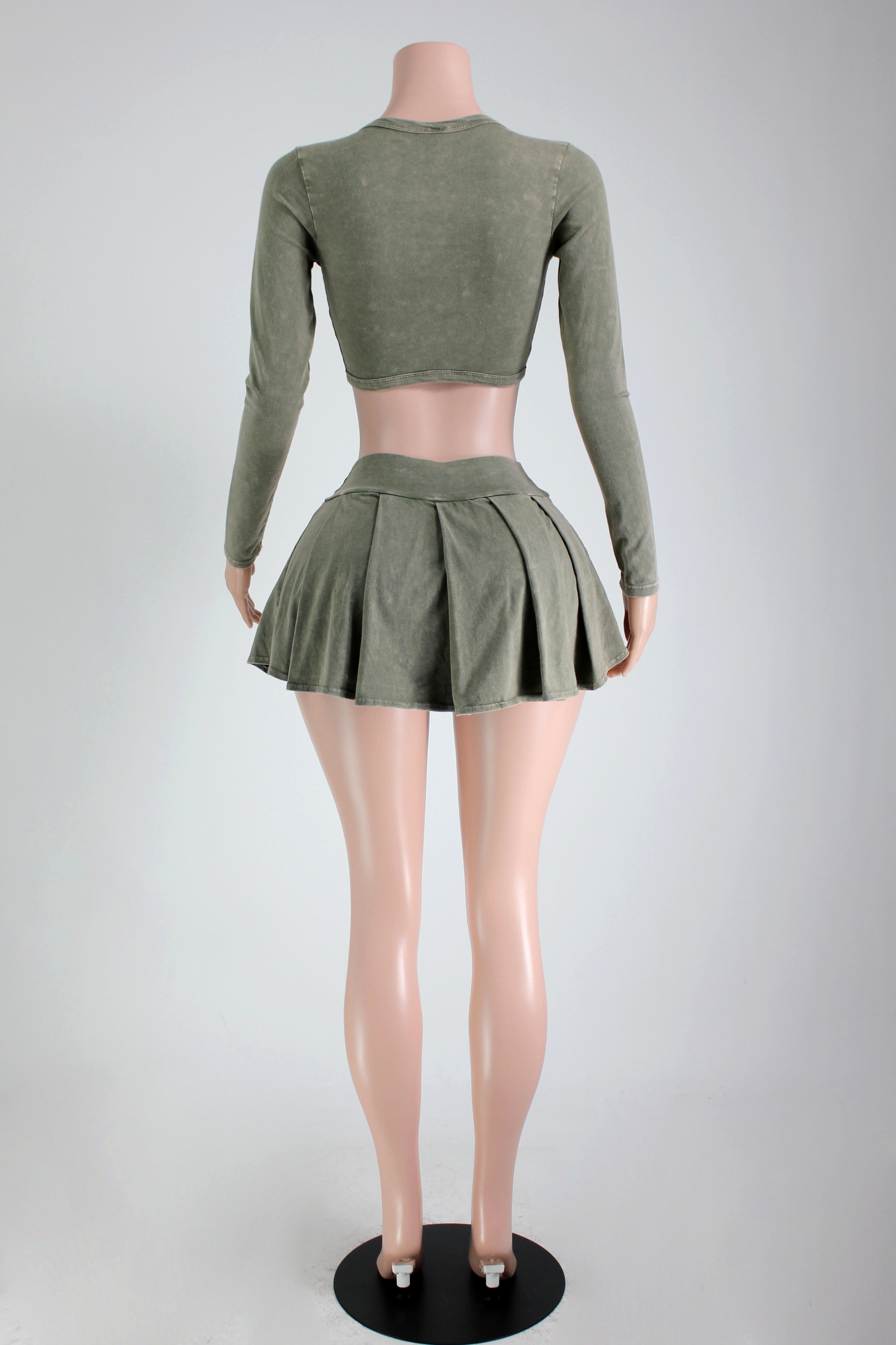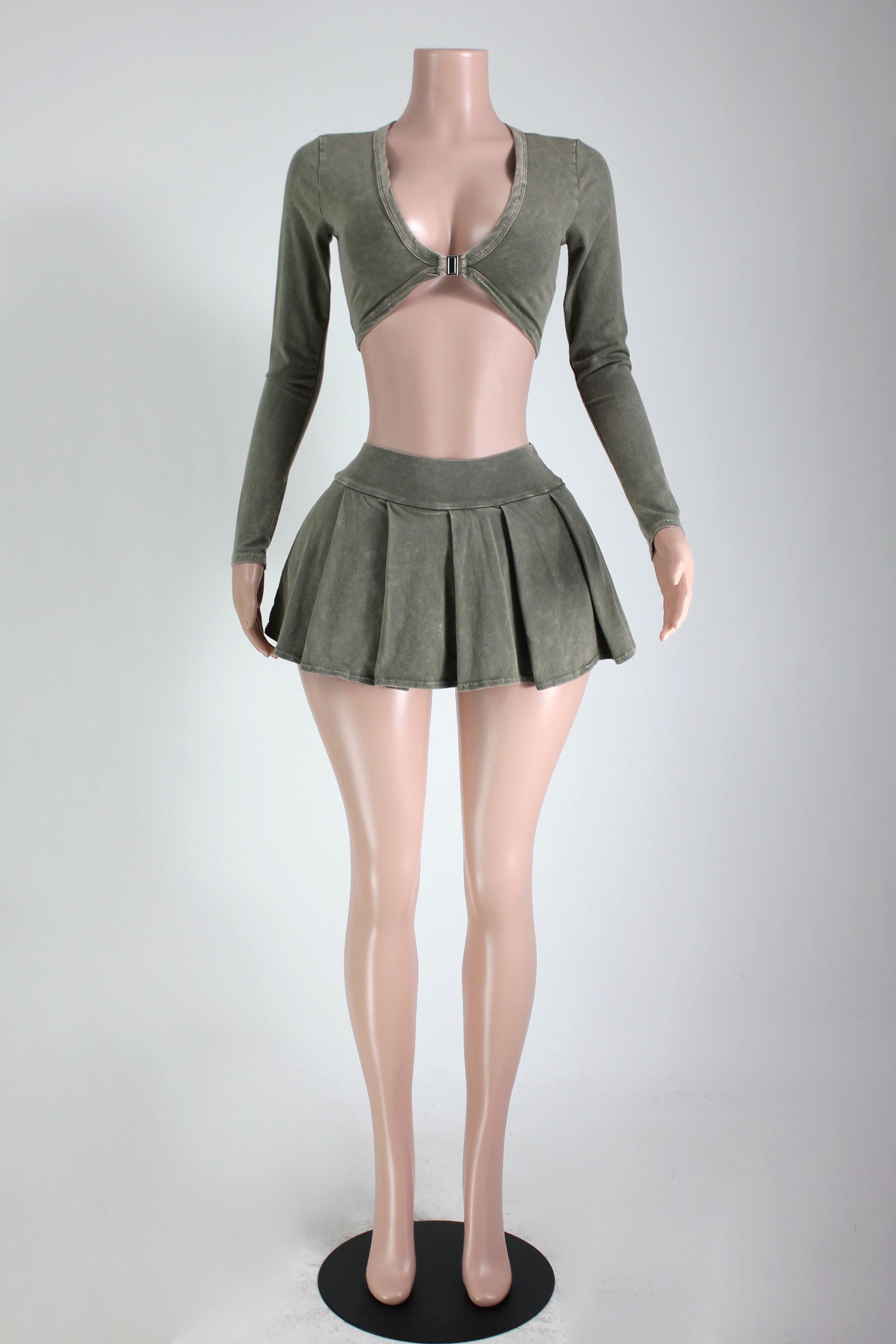 MINERAL WASH BUCKLE TOP & PLEATED SKIRT SET