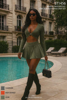 -MINERAL WASH-SET COMES WITH TOP AND BOTTOM-FRONT BUCKLE CLASP DETAIL-PLEATED SKIRT WITH INNER SHORT-STRETCH