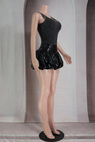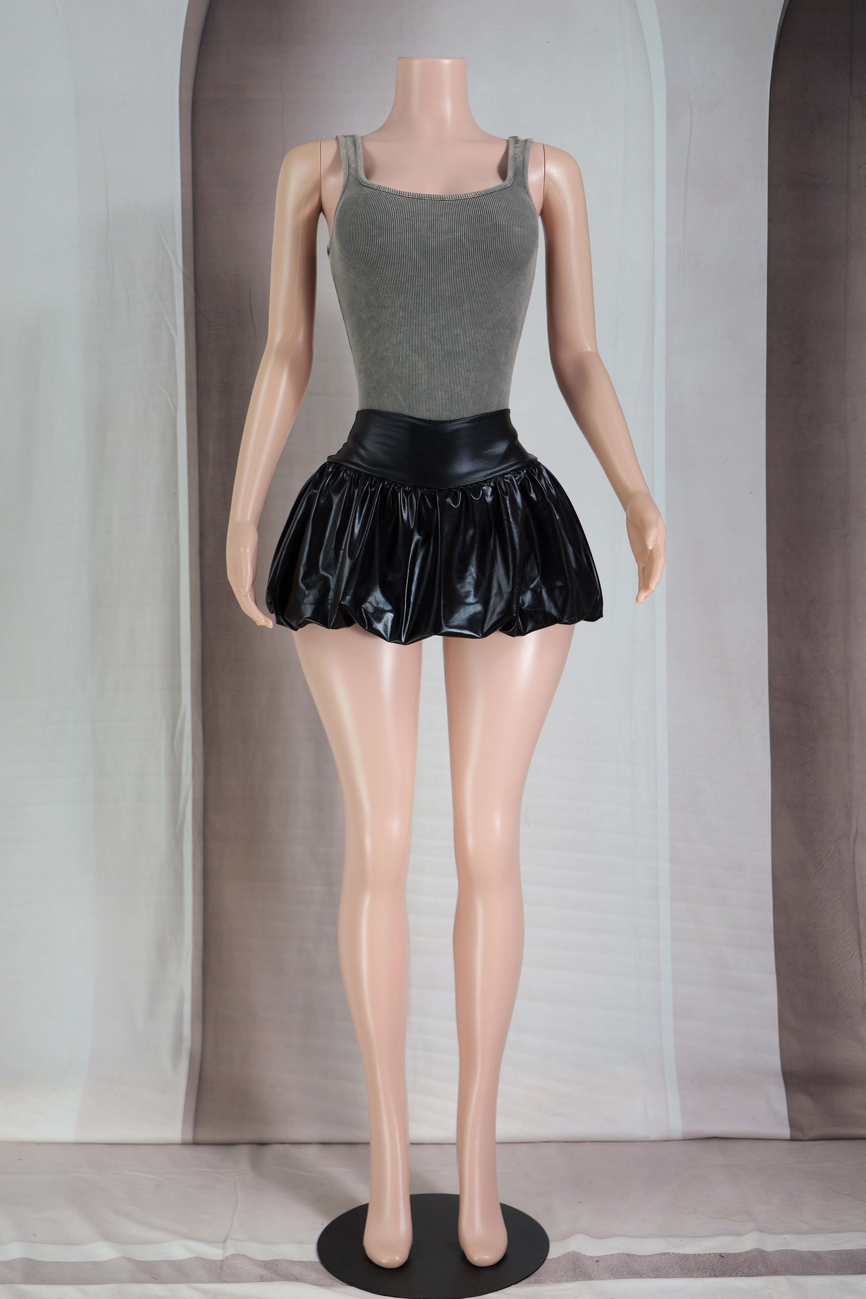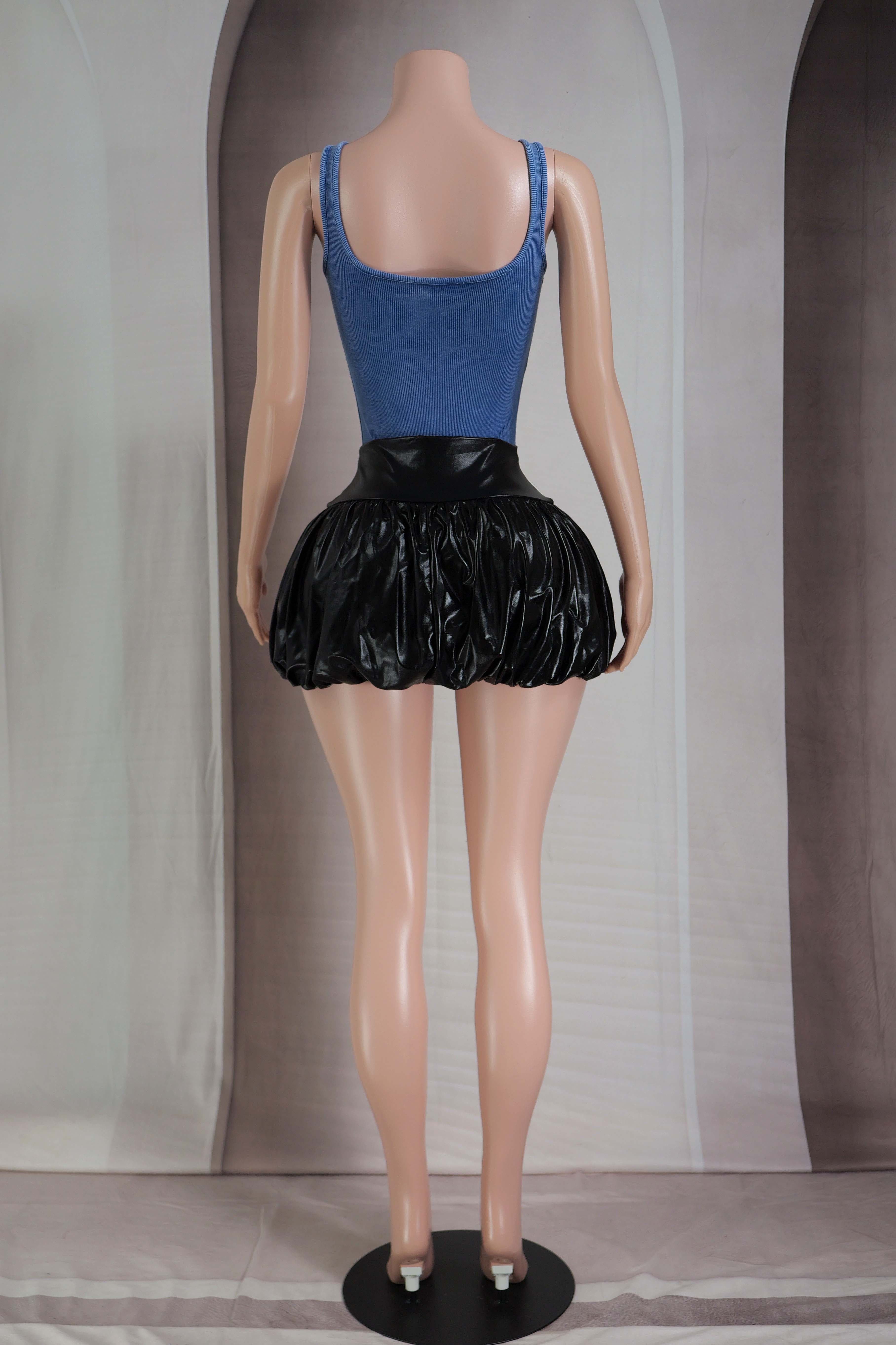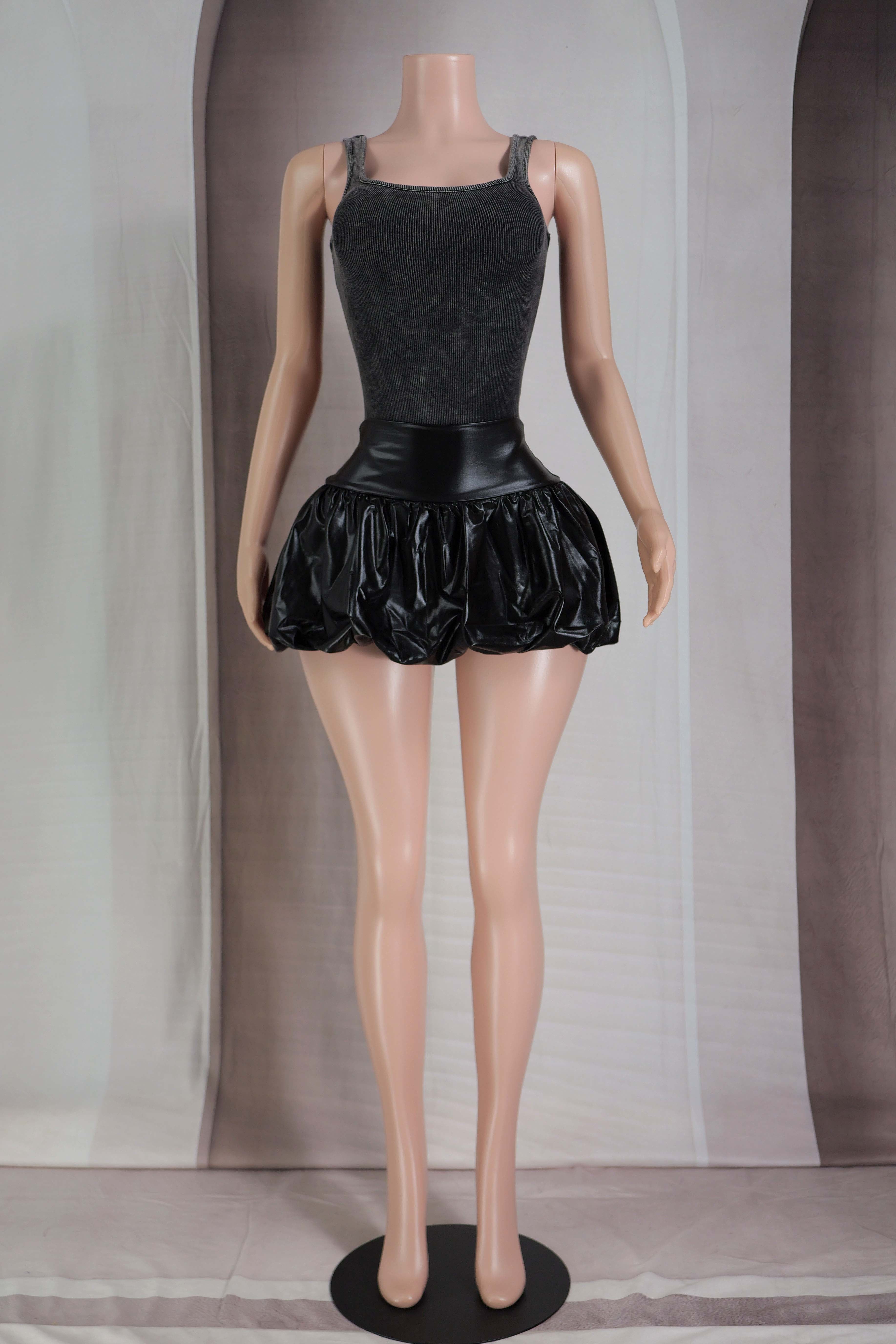 -MINERAL WASH-SET COMES WITH TOP & BOTTOM-SNAP BUTTON CLOSURE BODYSUIT-MINI LENGTH BUBBLE SKIRT WITH INNER SHORT-STRETCH