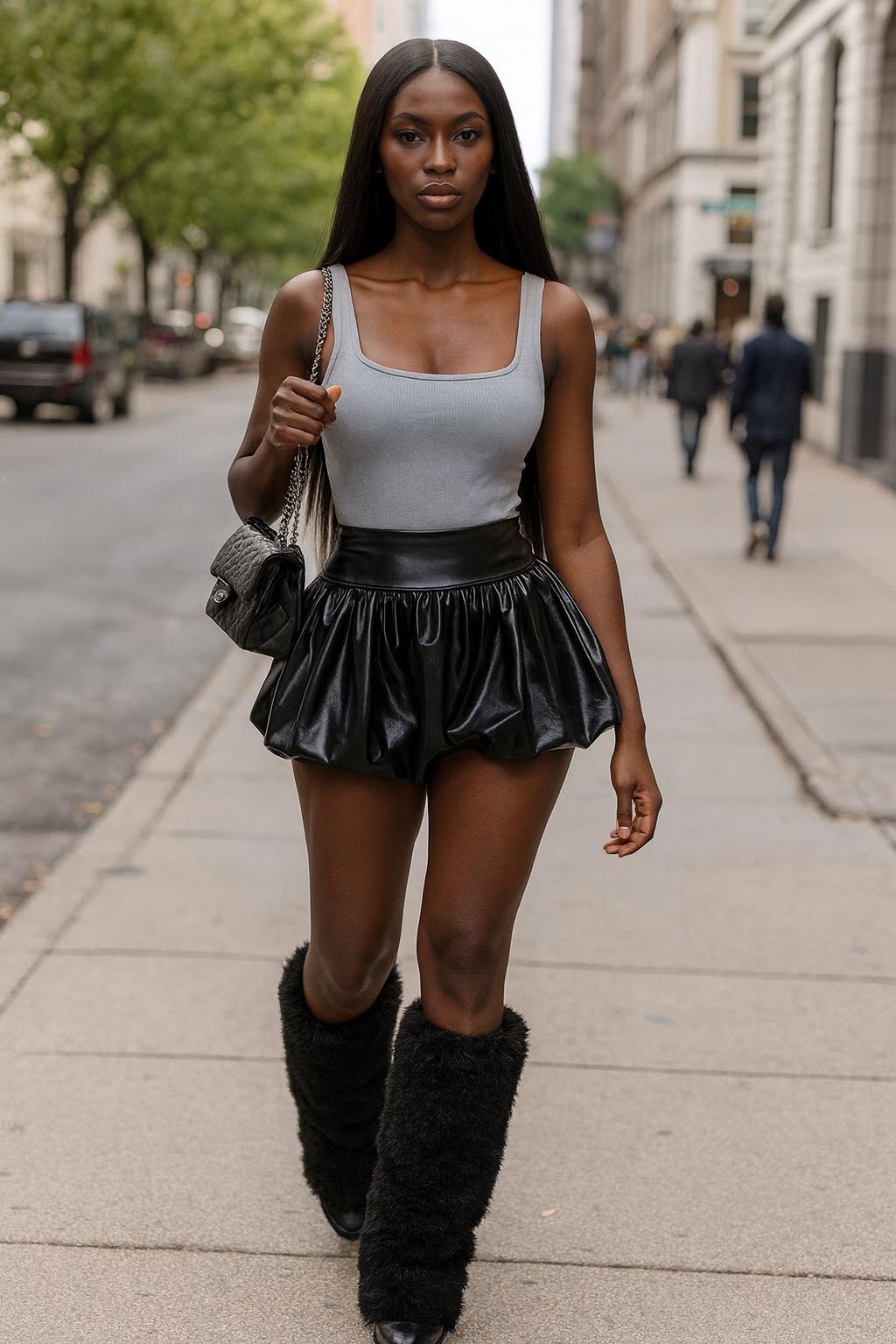 MINERAL WASH TANK BODYSUIT & BUBBLE SKIRT SET