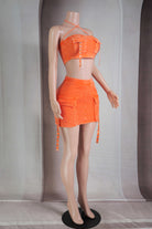 -MINERAL WASH-SET COMES WITH TOP AND BOTTOM-ADJUSTABLE STRAP TUBE TOP WITH CARGO POCKETS-SKIRT WITH CARGO POCKETS AND ELASTIC WAISTBAND-STRETCH-THICK TERRY MATERIAL