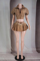 OIL WASH ZIP-UP CROPPED JACKET & RUFFLED SKORT SET