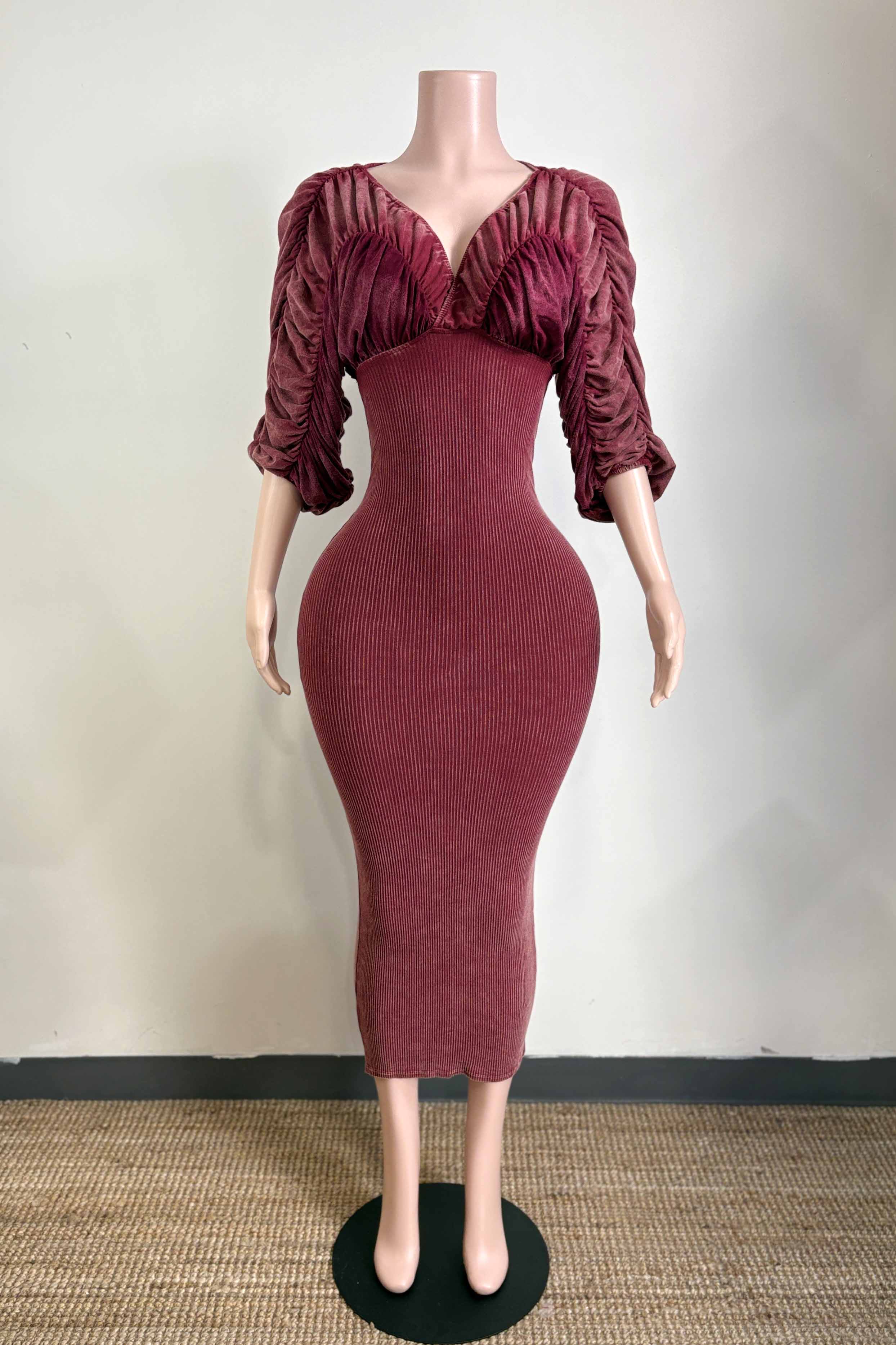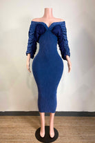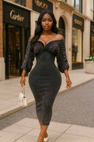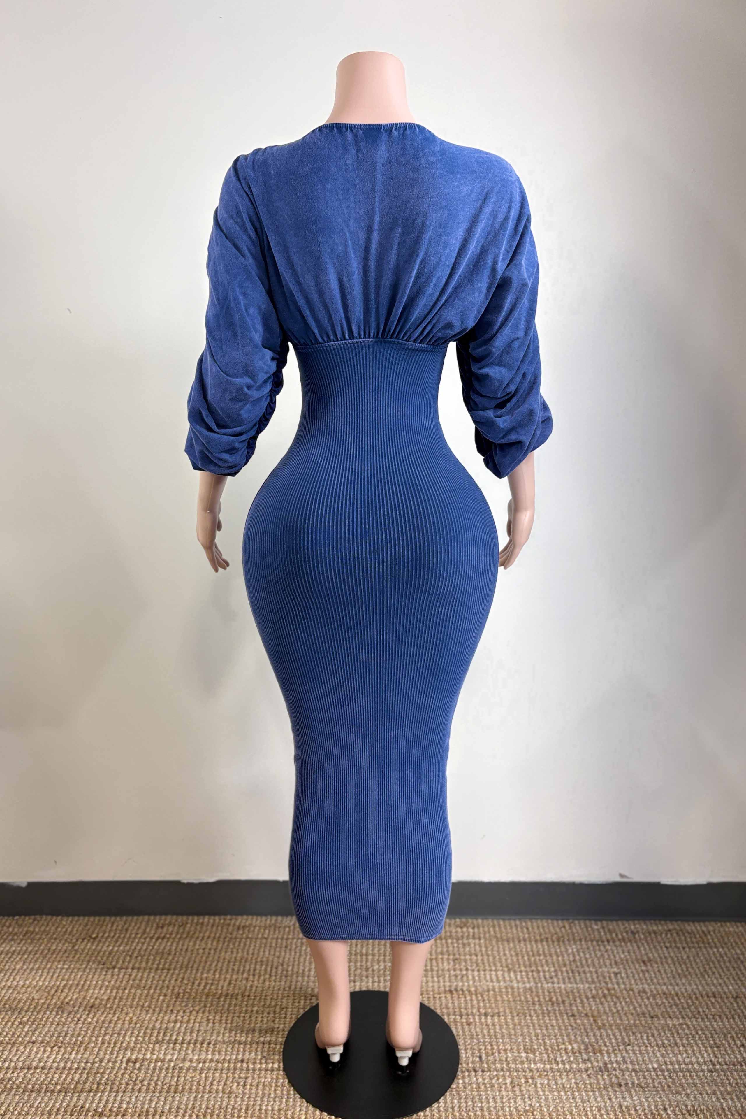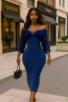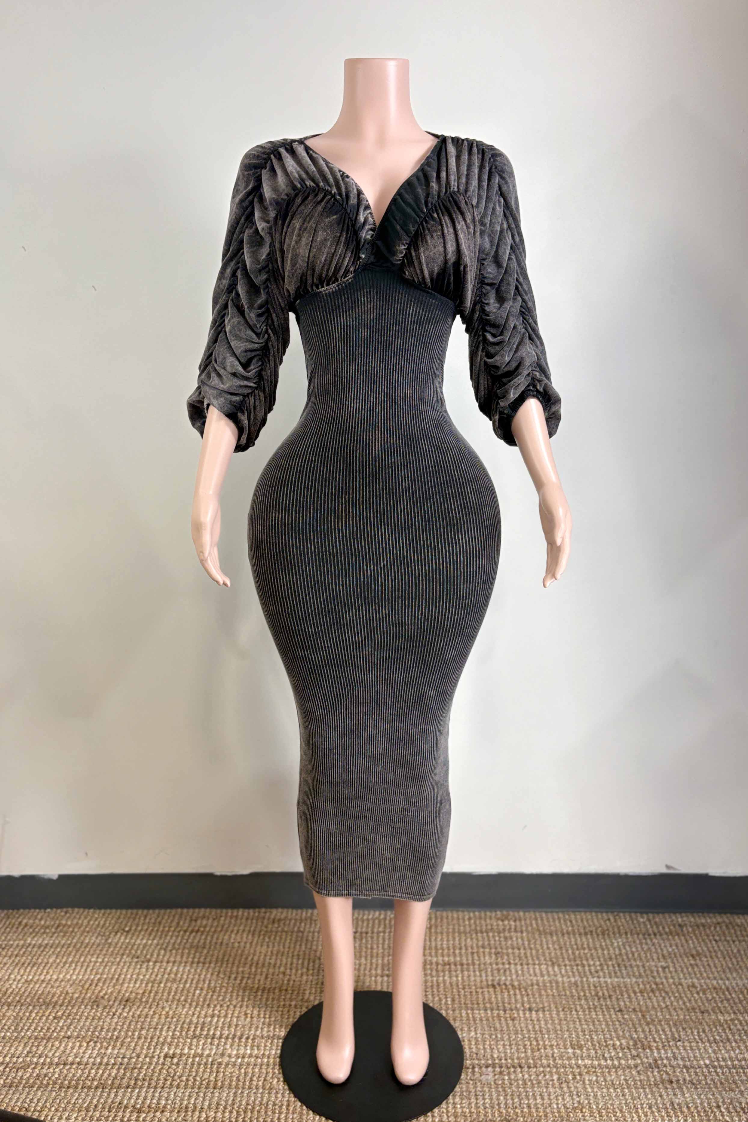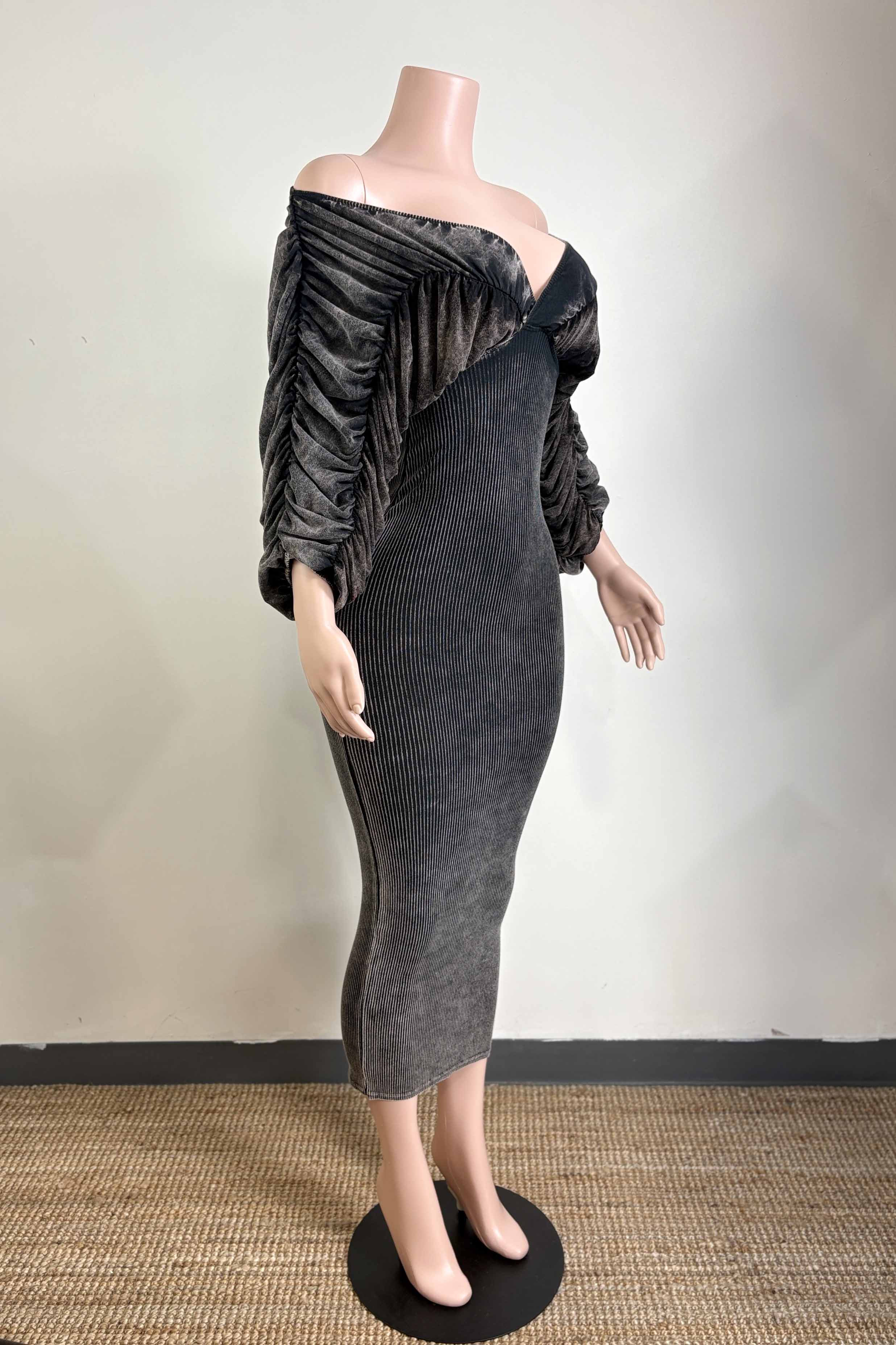-MINERAL WASH-ULTRA RUCHED-OFF SHOULDER, SWEETHEART NECKLINE-BODYCON-STRETCH-MIDI LENGTH