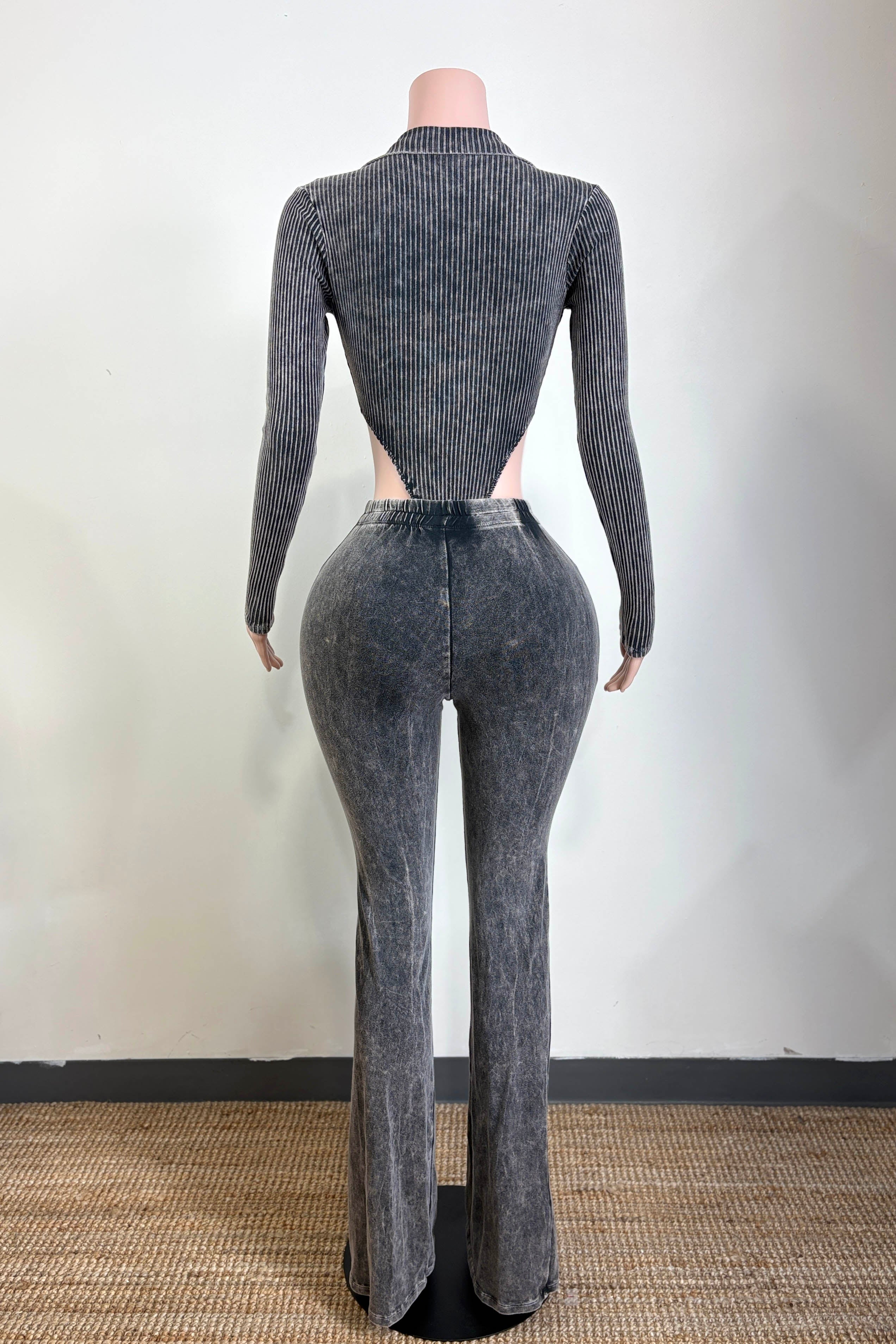 MINERAL WASH LONG SLEEVE BODYSUIT & FLARE PANT SET