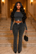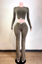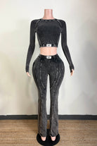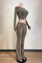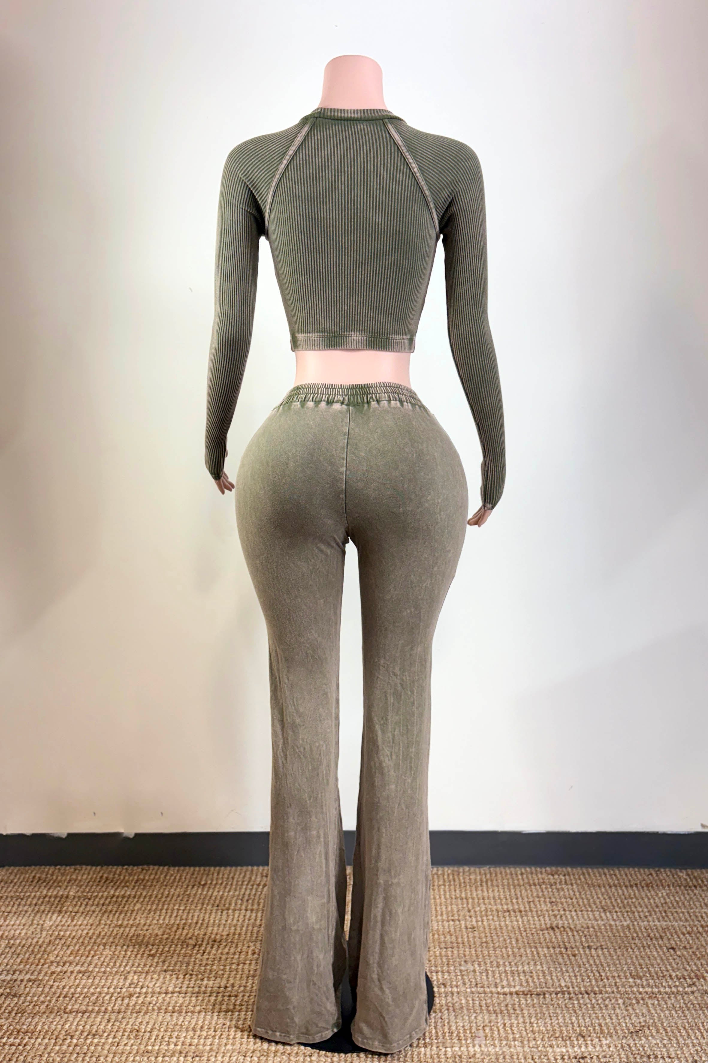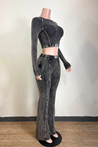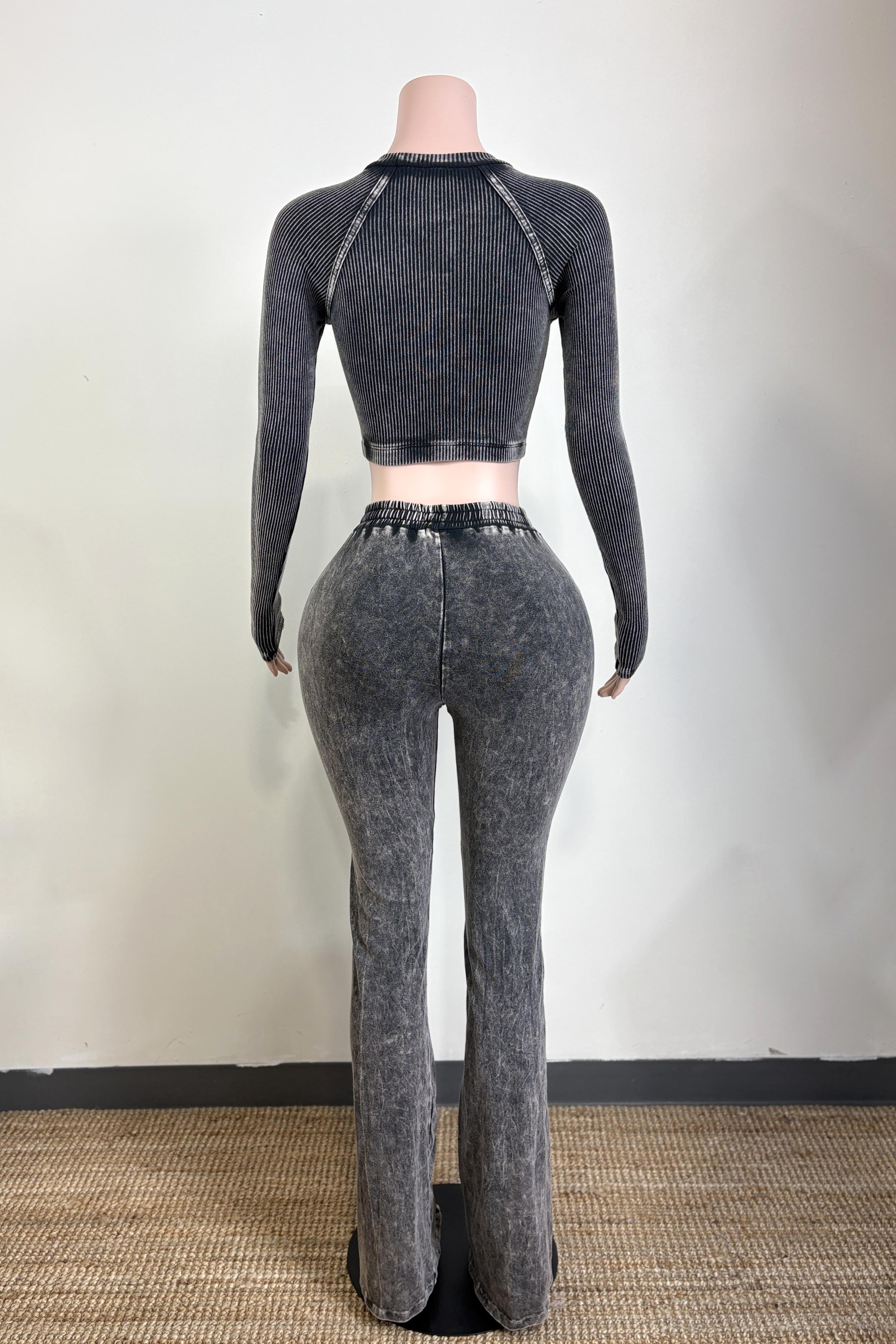 -MINERAL WASH-WHITE SATIN LABEL DETAIL-CROPPED LONG SLEEVE TOP-ELASTIC WAIST PANT-TALL GIRL FRIENDLY-STRETCH