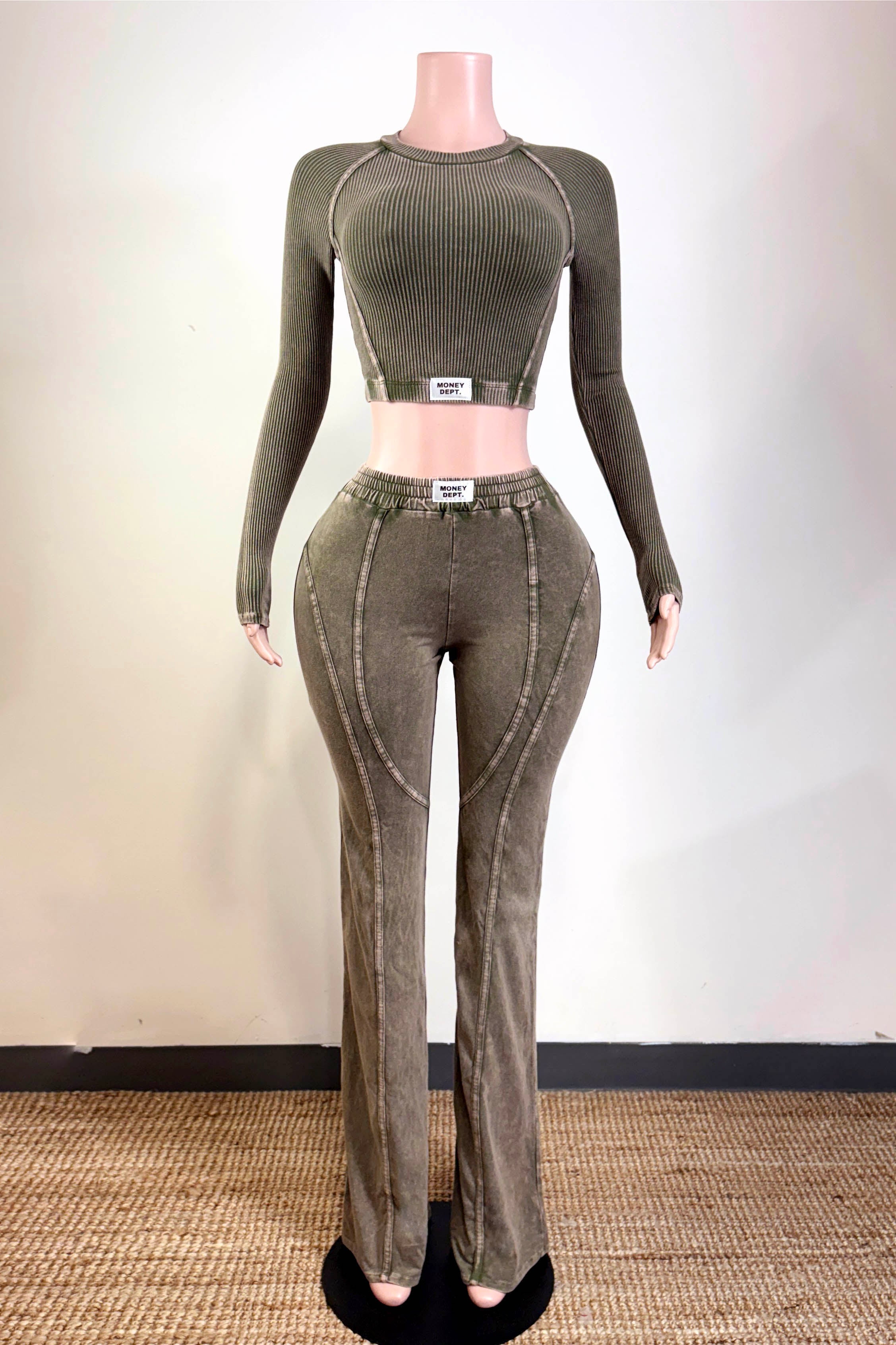 MINERAL WASH MONEY DEPT TOP & LOUNGE PANT SET